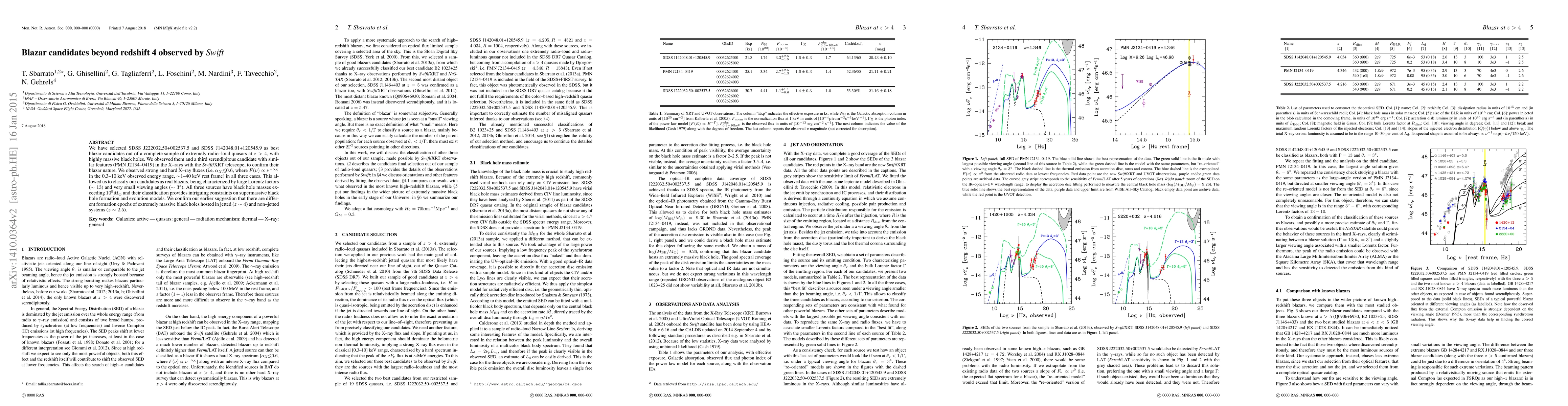 Researchers confirm three new blazar candidates with extremely massive black holes (>10^9Msun) at redshifts > 4, challenging models of supermassive black hole formation and evolution.