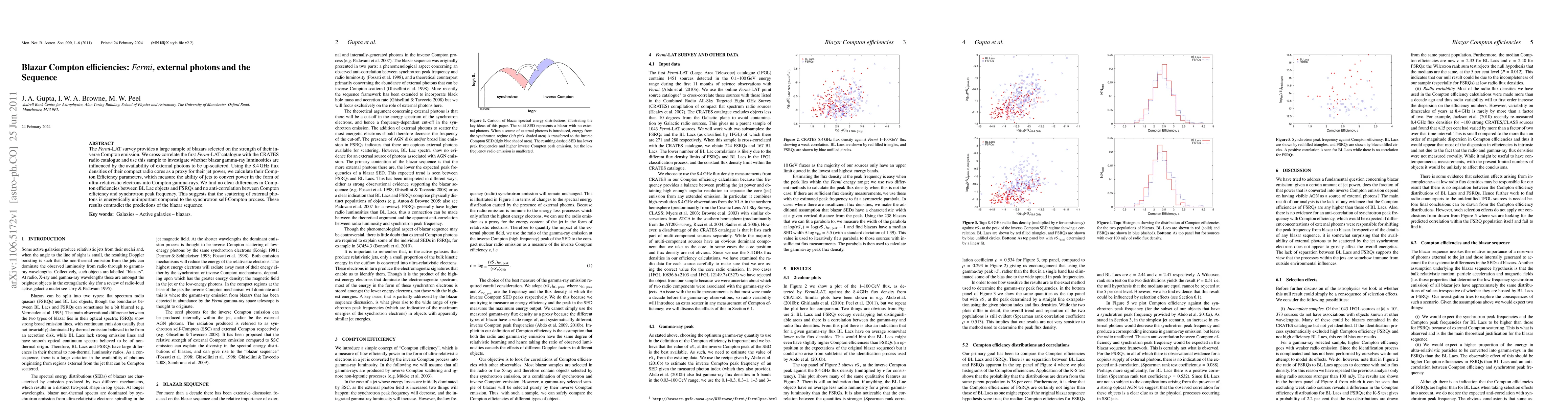 The Fermi-LAT survey provides a large sample of blazars selected on the strength of their inverse Compton emission. We cross-correlate the first Fermi-LAT catalogue with the CRATES radio catalogue and use this sample to investigate whether blazar gamma-ray luminosities are influenced by the availability of external photons to be up-scattered. Using the 8.4 GHz flux densities of their compact radio cores as a proxy for their jet power, we calculate their Compton Efficiency parameters, which measure the ability of jets to convert power in the form of ultra-relativistic electrons into Compton gamma-rays. We find no clear differences in Compton efficiencies between BL Lac objects and FSRQs and no anti-correlation between Compton efficiency and synchrotron peak frequency. This suggests that the scattering of external photons is energetically unimportant compared to the synchrotron self-Compton process. These results contradict the predictions of the blazar sequence.