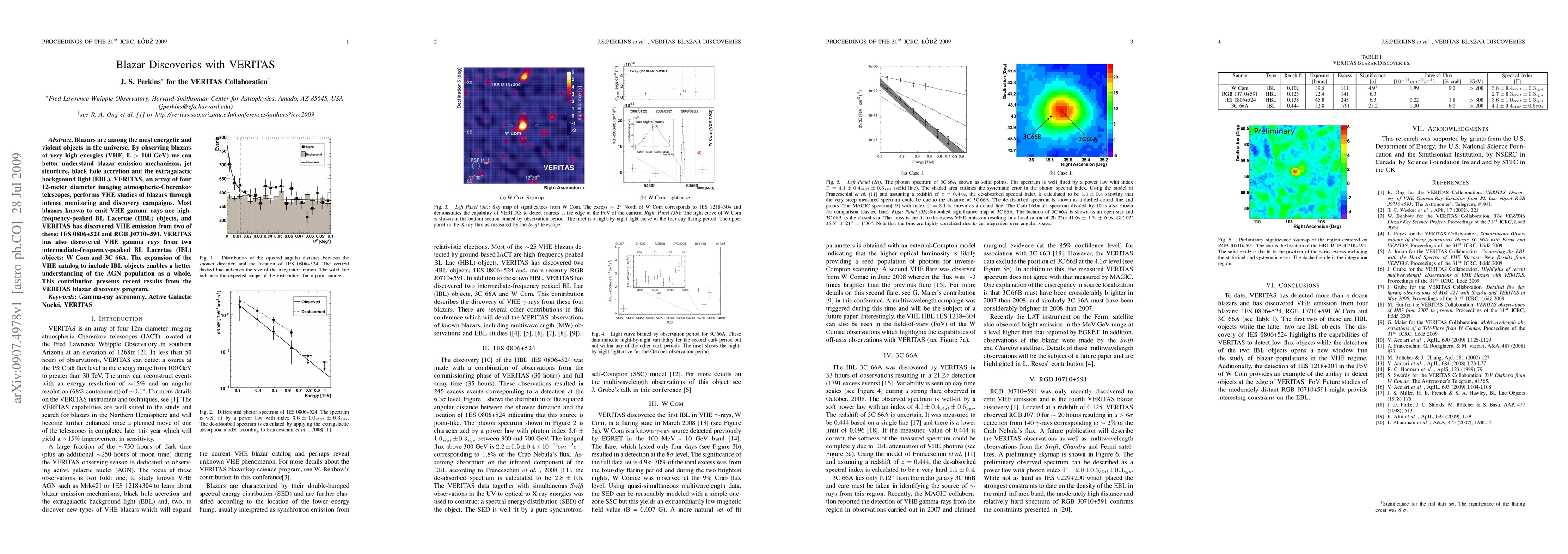 VERITAS has expanded the catalog of blazars emitting very high-energy (VHE) gamma rays by discovering VHE emissions from high-frequency-peaked BL Lacertae (HBL) objects 1ES 0806+524 and RGB J0710+591, as well as intermediate-frequency-peaked BL Lacertae (IBL) objects W Com and 3C 66A, enhancing our understanding of active galactic nuclei (AGN) populations.