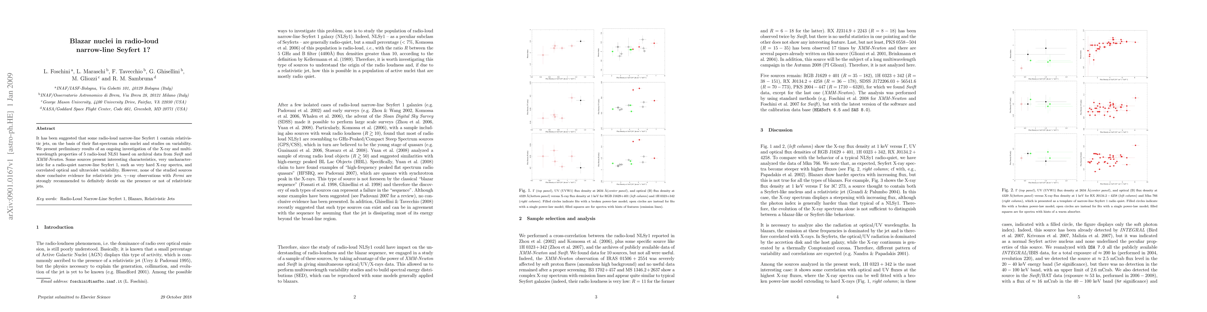 It has been suggested that some radio-loud narrow-line Seyfert 1 contain relativistic jets, on the basis of their flat-spectrum radio nuclei and studies on variability. We present preliminary results of an ongoing investigation of the X-ray and multiwavelength properties of 5 radio-loud NLS1 based on archival data from Swift and XMM-Newton. Some sources present interesting characteristics, very uncharacteristic for a radio-quiet narrow-line Seyfert 1, such as very hard X-ray spectra, and correlated optical and ultraviolet variability. However, none of the studied sources show conclusive evidence for relativistic jets. gamma-ray observations with Fermi are strongly recommended to definitely decide on the presence or not of relativistic jets.
