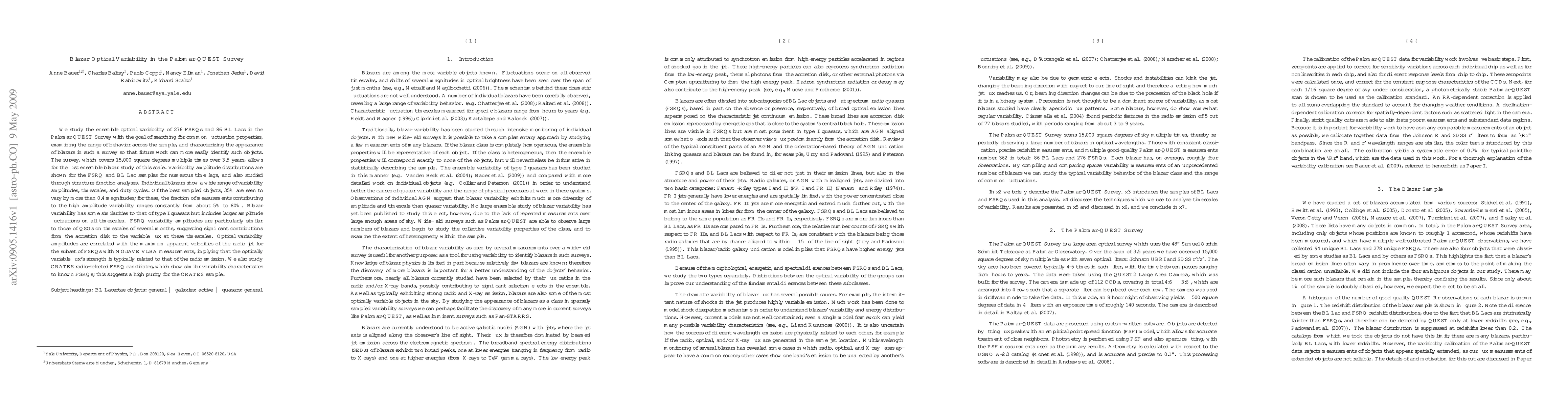This paper investigates the optical variability of 276 FSRQs and 86 BL Lacs from the Palomar-QUEST Survey, revealing a wide range of variability amplitudes and timescales. The study finds that FSRQs exhibit variability similar to type I quasars, with significant contributions from the accretion disk.