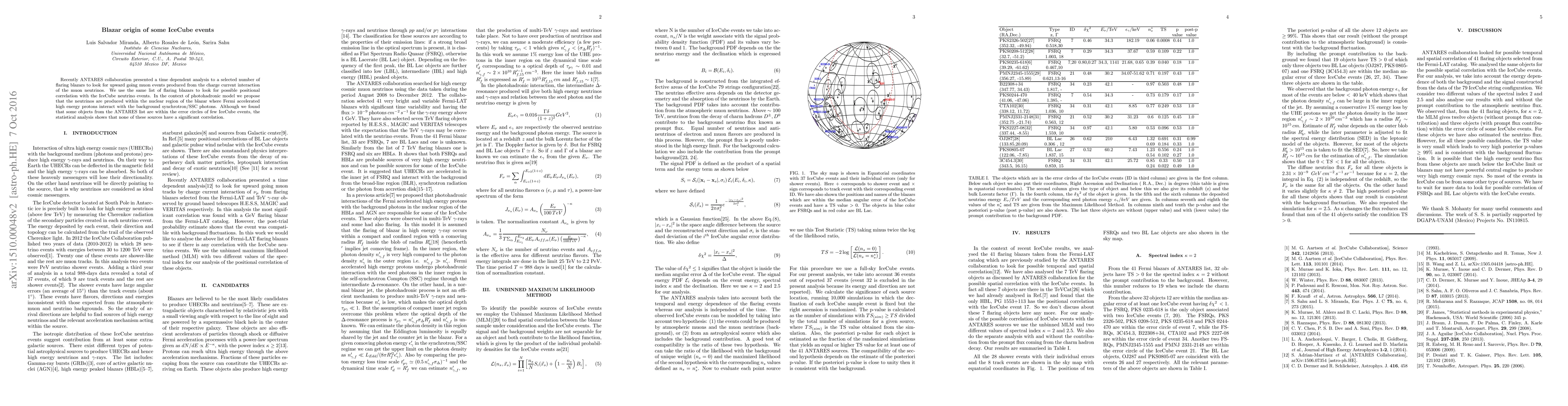 This study investigates the potential blazar origin of some IceCube neutrino events by correlating flaring blazars from the ANTARES collaboration with IceCube data. Despite some blazars being within the error circles of IceCube events, statistical analysis reveals no significant positional correlation, suggesting alternative sources for the neutrinos.