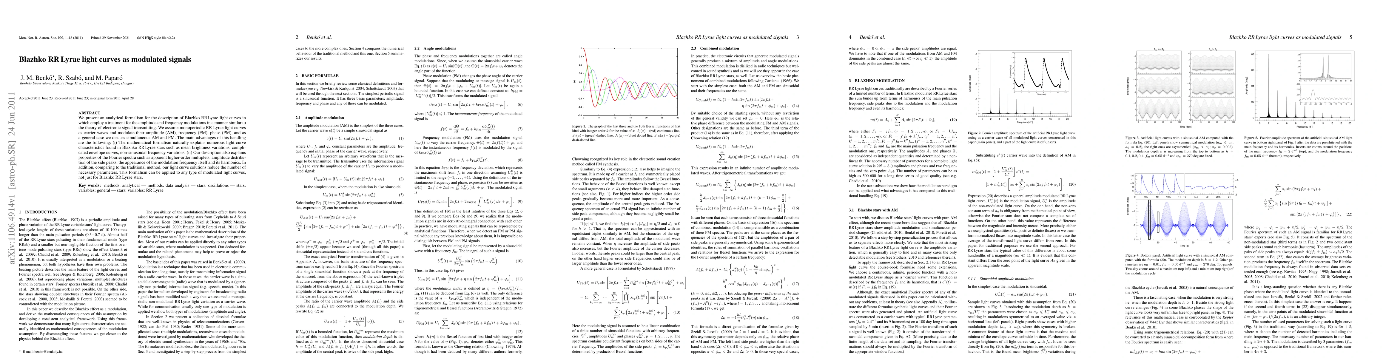 This paper introduces an analytical framework for describing Blazhko RR Lyrae light curves using modulation theory akin to electronic signal transmission, explaining complex light curve characteristics and reducing necessary parameters. The approach also elucidates Fourier spectrum properties and can be applied to various modulated light curves.