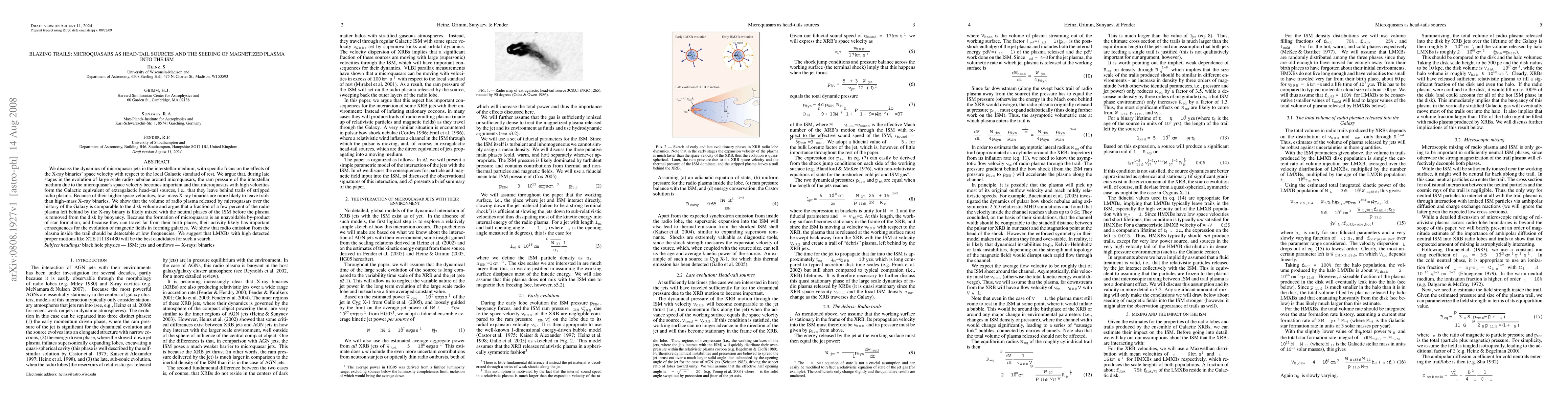 We discuss the dynamics of microquasar jets in the interstellar medium, with specific focus on the effects of the X-ray binaries' space velocity with respect to the local Galactic standard of rest. We argue that, during late stages in the evolution of large scale radio nebulae around microquasars, the ram pressure of the interstellar medium due to the microquasar's space velocity becomes important and that microquasars with high velocities form the Galactic equivalent of extragalactic head-tail sources, i.e., that they leave behind trails of stripped radio plasma. Because of their higher space velocities, low-mass X-ray binaries are more likely to leave trails than high-mass X-ray binaries. We show that the volume of radio plasma released by microquasars over the history of the Galaxy is comparable to the disk volume and argue that a fraction of a few percent of the radio plasma left behind by the X-ray binary is likely mixed with the neutral phases of the ISM before the plasma is removed from the disk by buoyancy. Because the formation of microquasars is an unavoidable by-product of star formation, and because they can travel far from their birth places, their activity likely has important consequences for the evolution of magnetic fields in forming galaxies. We show that radio emission from the plasma inside the trail should be detectable at low frequencies. We suggest that LMXBs with high detected proper motions like XTE J1118+480 will be the best candidates for such a search.