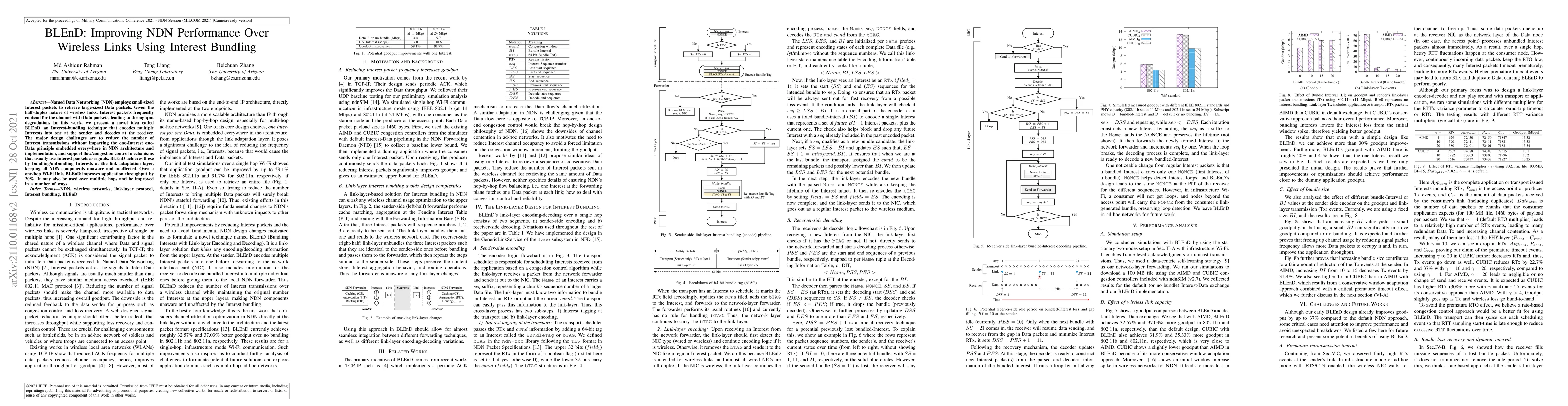Named Data Networking (NDN) employs small-sized Interest packets to retrieve large-sized Data packets. Given the half-duplex nature of wireless links, Interest packets frequently contend for the channel with Data packets, leading to throughput degradation. In this work, we present a novel idea called BLEnD, an Interest-bundling technique that encodes multiple Interests into one at the sender and decodes at the receiver. The major design challenges are to reduce the number of Interest transmissions without impacting the one-Interest one-Data principle embedded everywhere in NDN architecture and implementation, and support flow/congestion control mechanisms that usually use Interest packets as signals. BLEnD achieves these by bundling/unbundling Interests at the link adaptation layer, keeping all NDN components unaware and unaffected. Over a one-hop WiFi link, BLEnD improves application throughput by 30%. It may also be used over multiple hops and be improved in a number of ways.