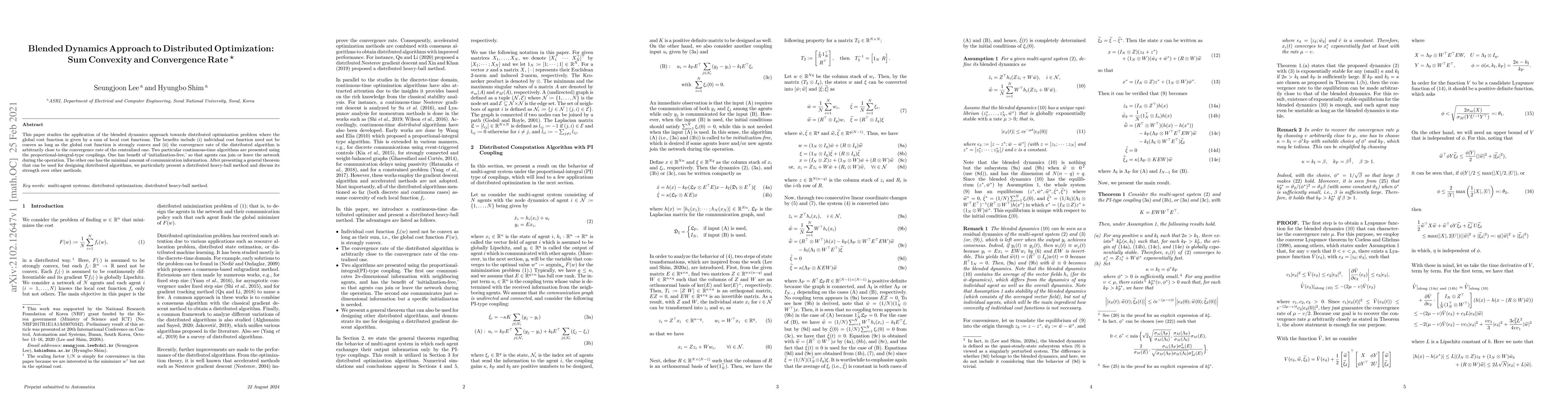 This paper studies the application of the blended dynamics approach towards distributed optimization problem where the global cost function is given by a sum of local cost functions. The benefits include (i) individual cost function need not be convex as long as the global cost function is strongly convex and (ii) the convergence rate of the distributed algorithm is arbitrarily close to the convergence rate of the centralized one. Two particular continuous-time algorithms are presented using the proportional-integral-type couplings. One has benefit of `initialization-free,' so that agents can join or leave the network during the operation. The other one has the minimal amount of communication information. After presenting a general theorem that can be used for designing distributed algorithms, we particularly present a distributed heavy-ball method and discuss its strength over other methods.