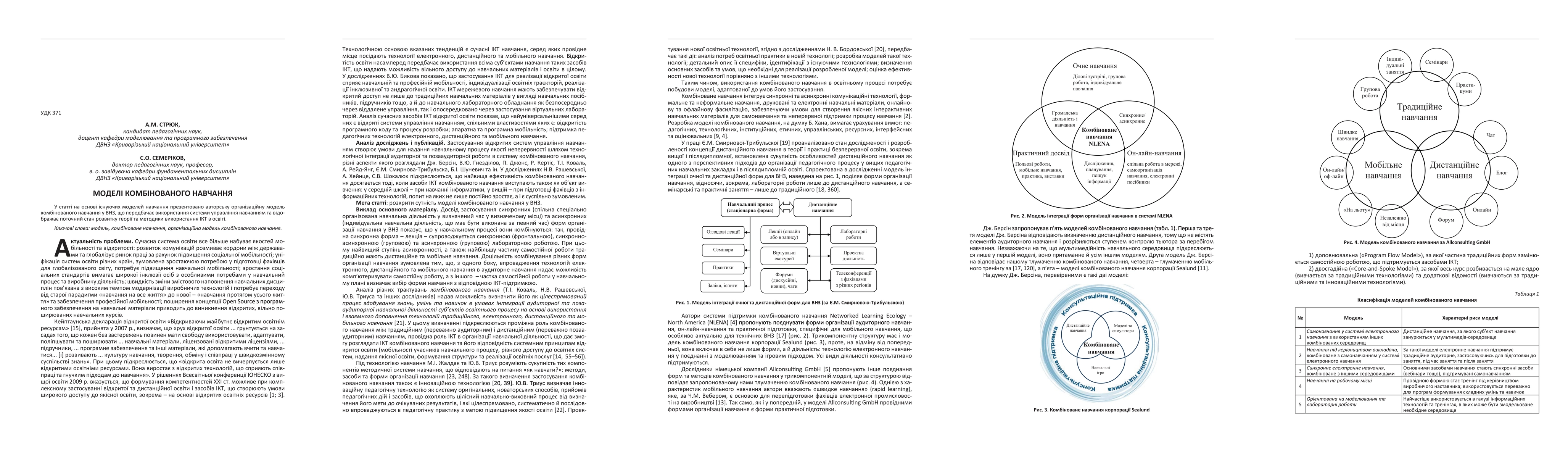 The article presents the authors' organizational model of blended learning on the basis of existing models of learning at higher educational establishments. The model provides for using the learning management system and reflects current developments of ICT use theory and methodology.