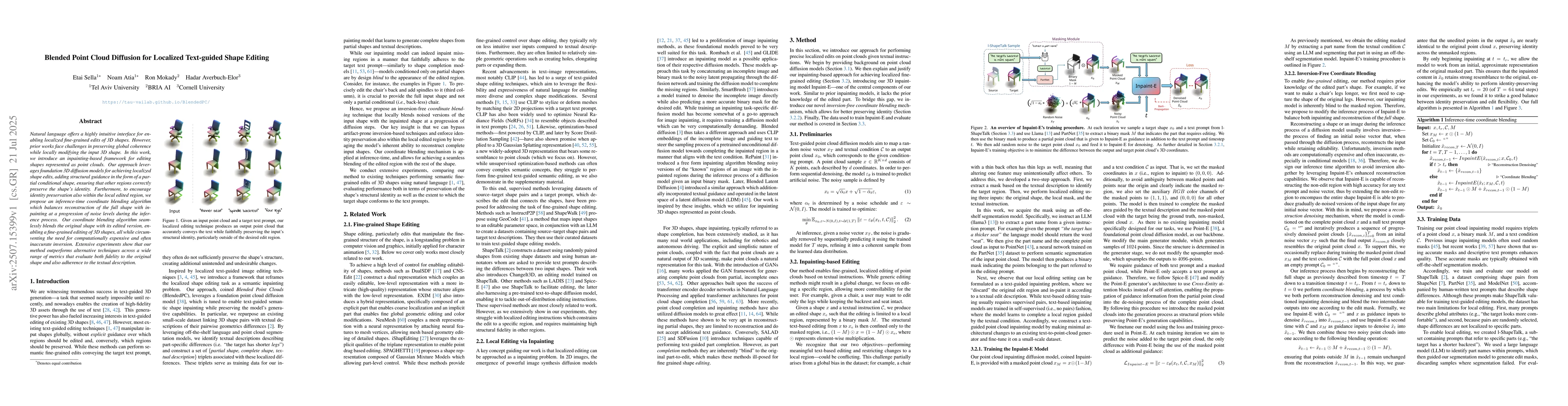 The research introduces an inpainting-based framework for editing 3D shapes represented as point clouds, leveraging foundation 3D diffusion models and a coordinate blending algorithm for localized shape edits with structural guidance.