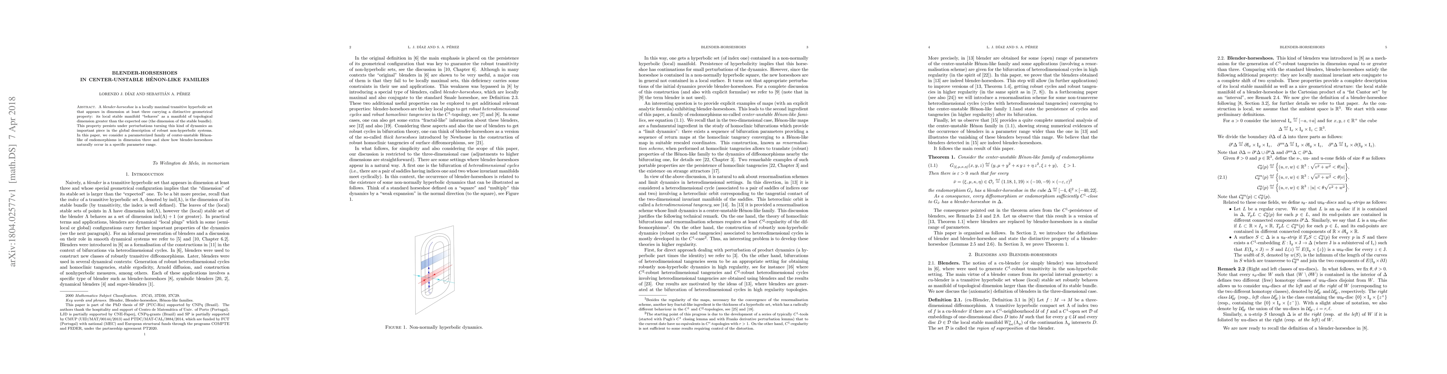 This paper explores the emergence of blender-horseshoes within a parameterized family of center-unstable Hénon-like endomorphisms in three dimensions, demonstrating their significance in describing robust non-hyperbolic dynamics. The blender-horseshoes exhibit a unique geometrical property where their local stable manifold exceeds the expected topological dimension.