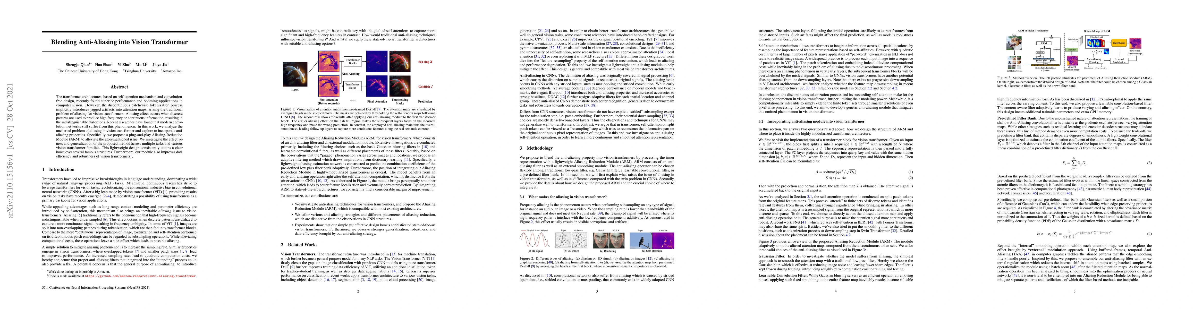 This paper addresses the aliasing problem in vision transformers by introducing a lightweight Aliasing-Reduction Module (ARM) that enhances performance, data efficiency, and robustness across various vision transformer architectures. The ARM effectively mitigates jagged artifacts in attention maps, leading to superior results in multiple tasks.