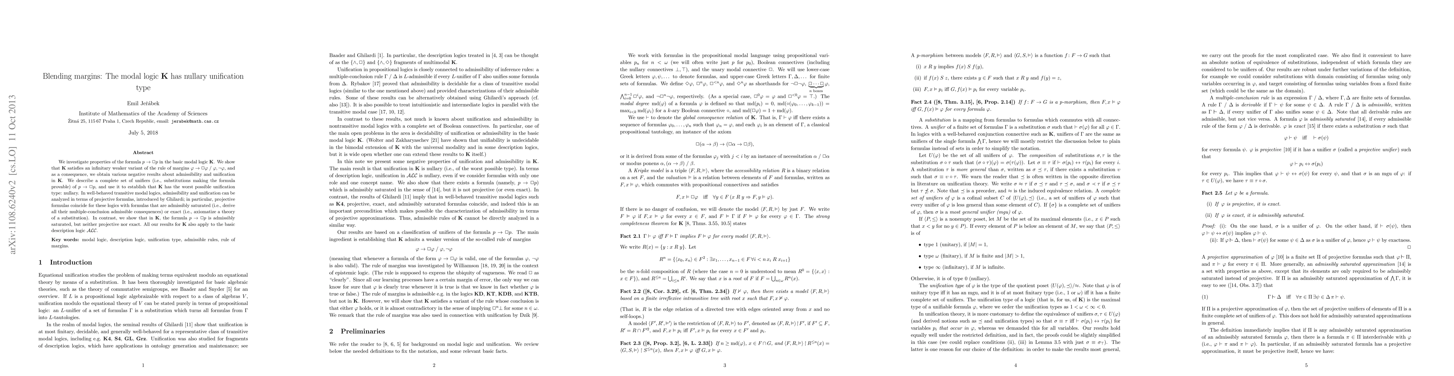 The paper demonstrates that the modal logic K exhibits the worst possible unification type: nullary. It explores the formula $p \to \Box p$ and finds that K does not support admissibility and unification, revealing that $p \to \Box p$ is admissibly saturated but neither projective nor exact.