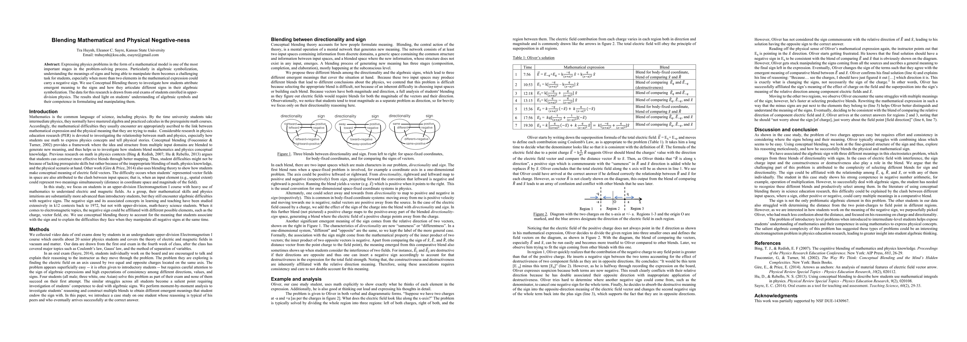 This study uses Conceptual Blending theory to explore how students interpret and manipulate algebraic symbols, particularly negative signs, in physics problems. Findings from oral exams reveal insights into students' understanding and competence in algebraic symbolization.