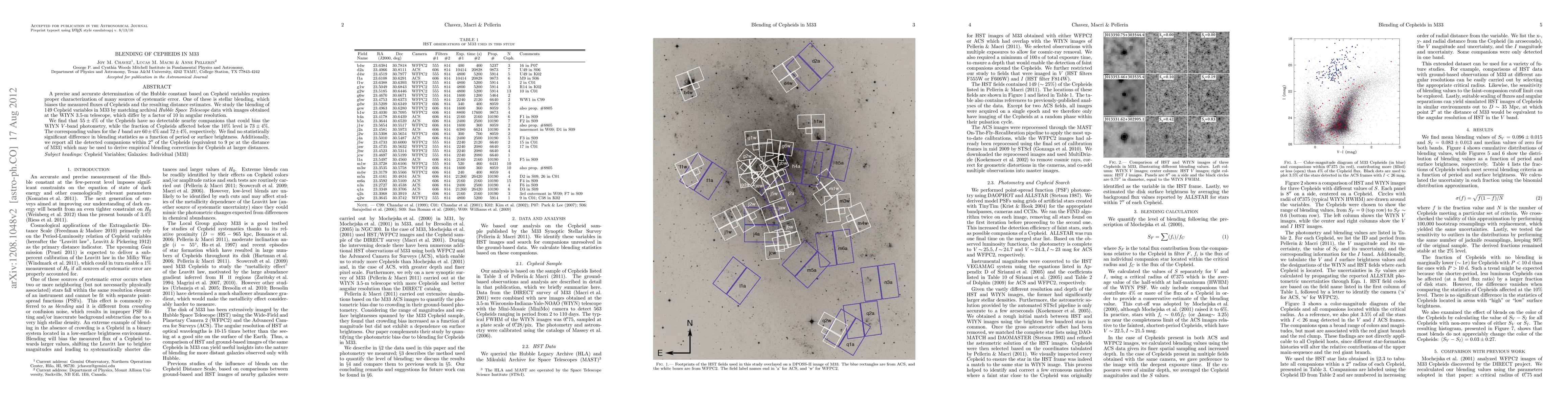 A study of 149 Cepheid variables in M33 galaxy reveals that 55% have no detectable nearby companions that bias distance estimates, while 73% affected in the V band and 72% in the I band.