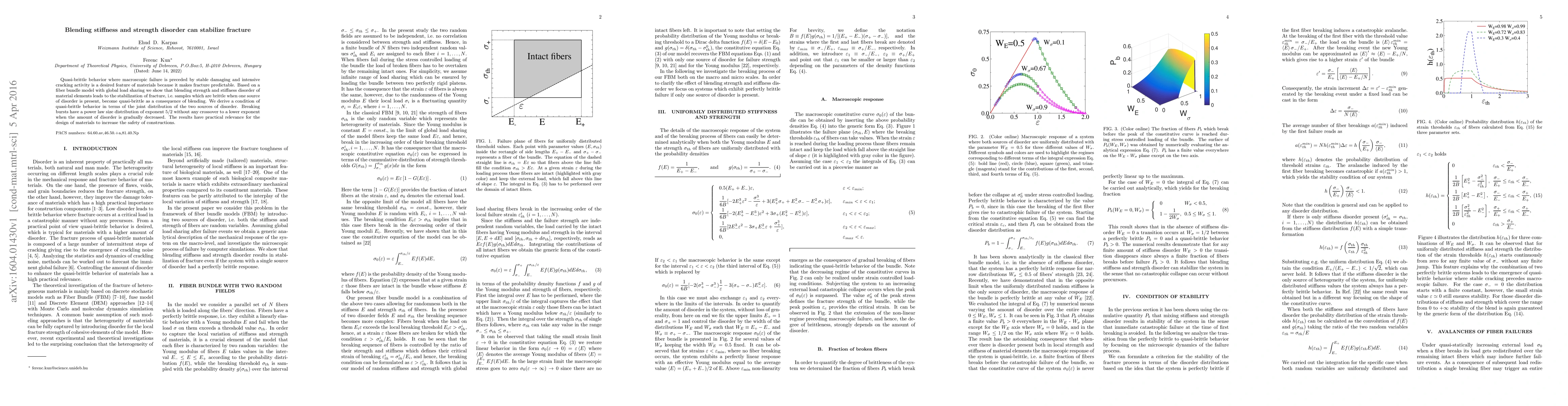 This paper demonstrates that blending strength and stiffness disorder in materials can stabilize fracture, turning brittle materials into quasi-brittle ones. The study uses a fiber bundle model to show that this stabilization occurs due to the joint distribution of the two disorder types, leading to a predictable fracture behavior.
