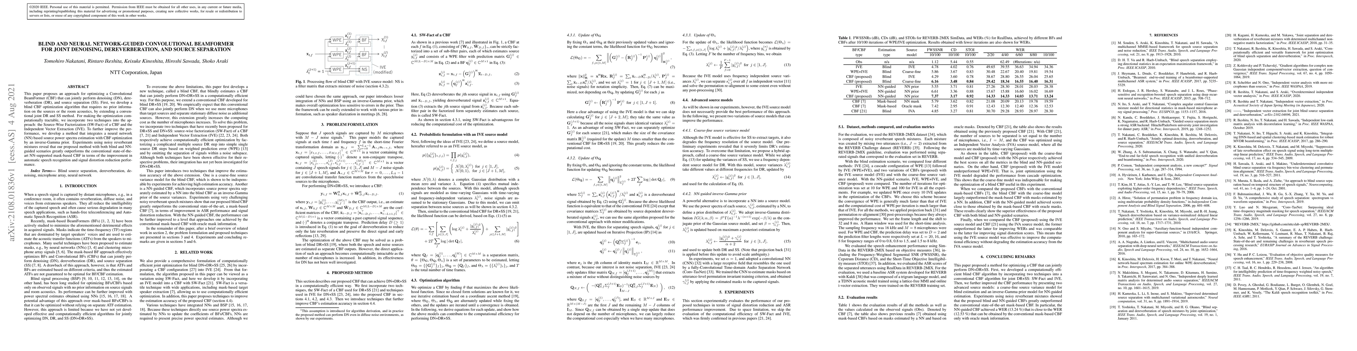This paper proposes a blind and neural network-guided Convolutional BeamFormer (CBF) for joint denoising, dereverberation, and source separation, outperforming conventional methods. The approach uses Source-Wise Factorization and Independent Vector Extraction for optimization, and integrates neural network-based source power spectra estimation for enhanced performance.