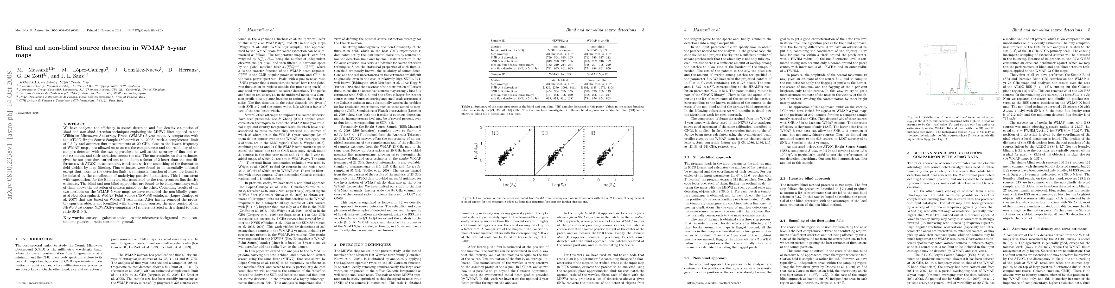 We have analyzed the efficiency in source detection and flux density estimation of blind and non-blind detection techniques exploiting the MHW2 filter applied to the Wilkinson Microwave Anisotropy Probe (WMAP) 5-year maps. A comparison with the AT20G Bright Source Sample (Massardi et al. 2008), with a completeness limit of 0.5 Jy and accurate flux measurements at 20 GHz, close to the lowest frequency of WMAP maps, has allowed us to assess the completeness and the reliability of the samples detected with the two approaches, as well as the accuracy of flux and error estimates, and their variations across the sky. The uncertainties on flux estimates given by our procedure turned out to be about a factor of 2 lower than the rms differences with AT20G measurements, consistent with the smoothing of the fluctuation field yielded by map filtering. Flux estimates were found to be essentially unbiased except that, close to the detection limit, a substantial fraction of fluxes are found to be inflated by the contribution of underlying positive fluctuations. This is consistent with expectations for the Eddington bias associated to the true errors on flux density estimates. The blind and non-blind approaches are found to be complementary: each of them allows the detection of sources missed by the other. Combining results of the two methods on the WMAP 5-year maps we have expanded the non-blindly generated New Extragalactic WMAP Point Source (NEWPS) catalogue (Lopez-Caniego et al. 2007) that was based on WMAP 3-year maps. After having removed the probably spurious objects not identified with known radio sources, the new version of the NEWPS catalogue, NEWPS_5yr comprises 484 sources detected with a signal-to-noise ratio SNR>5.