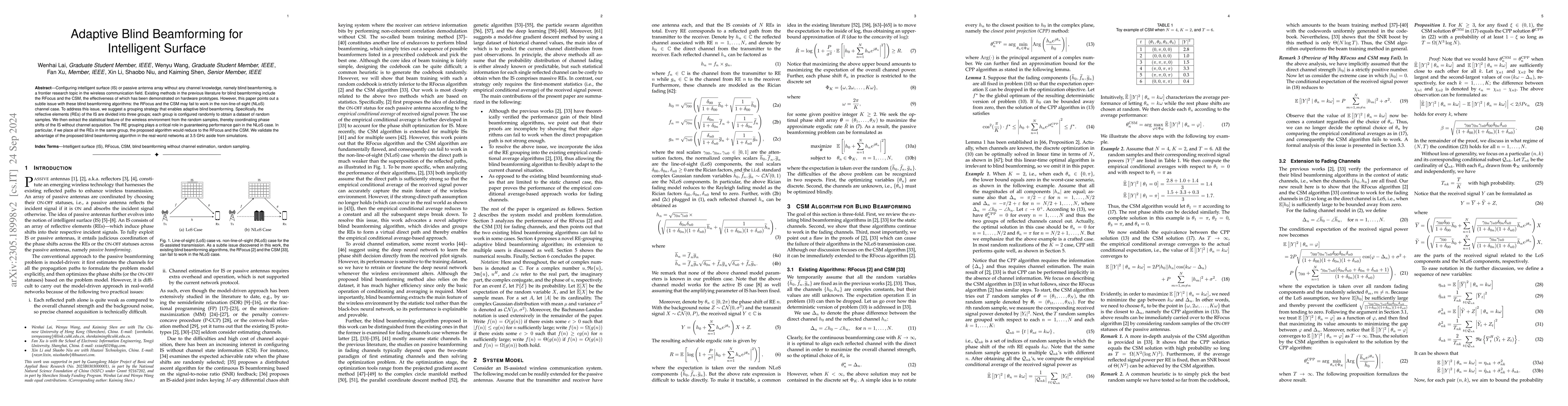 This paper discusses how to optimize the phase shifts of intelligent reflecting surface (IRS) to combat channel fading without any channel state information (CSI), namely blind beamforming. Differing from most previous works based on a two-stage paradigm of first estimating channels and then optimizing phase shifts, our approach is completely data-driven, only requiring a dataset of the received signal power at the user terminal. Thus, our method does not incur extra overhead costs for channel estimation, and does not entail collaboration from service provider, either. The main idea is to choose phase shifts at random and use the corresponding conditional sample mean of the received signal power to extract the main features of the wireless environment. This blind beamforming approach guarantees an $N^2$ boost of signal-to-noise ratio (SNR), where $N$ is the number of reflective elements (REs) of IRS, regardless of whether the direct channel is line-of-sight (LoS) or not. Moreover, blind beamforming is extended to a double-IRS system with provable performance. Finally, prototype tests show that the proposed blind beamforming method can be readily incorporated into the existing communication systems in the real world; simulation tests further show that it works for a variety of fading channel models.