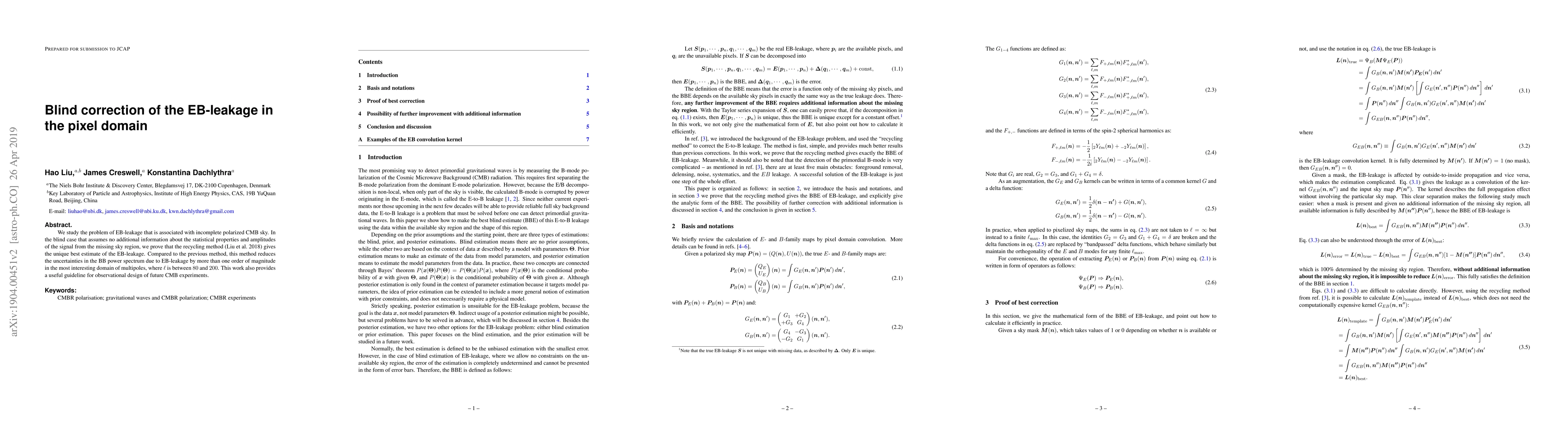 We study the problem of EB-leakage that is associated with incomplete polarized CMB sky. In the blind case that assumes no additional information about the statistical properties and amplitudes of the signal from the missing sky region, we prove that the recycling method (Liu et al.~2018) gives the unique best estimate of the EB-leakage. Compared to the previous method, this method reduces the uncertainties in the BB power spectrum due to EB-leakage by more than one order of magnitude in the most interesting domain of multipoles, where $\ell$ is between $80$ and $200$. This work also provides a useful guideline for observational design of future CMB experiments.