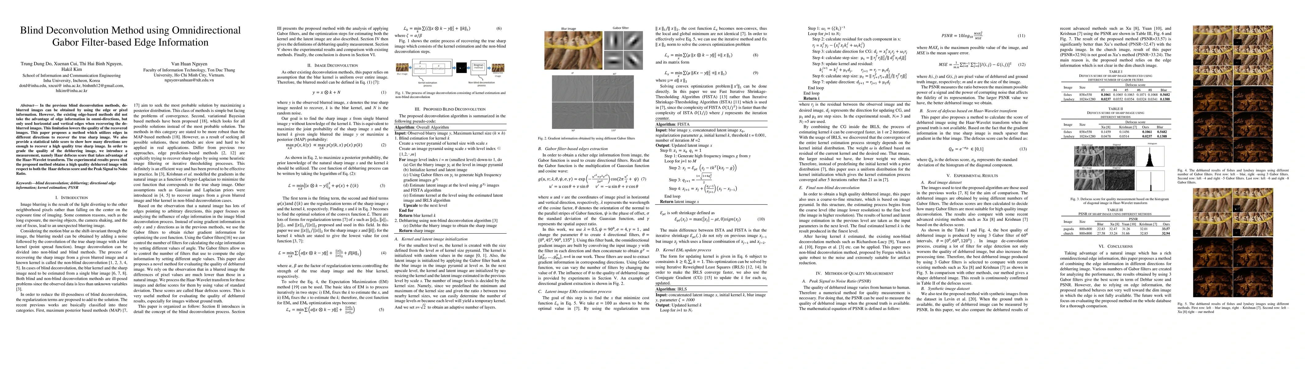 This paper proposes a novel blind deconvolution method using an omnidirectional Gabor filter to leverage edge information in multiple directions for higher quality de-blurred image recovery. The method introduces a Haar defocus score for quality assessment and demonstrates superior results in terms of both the Haar defocus score and Peak Signal to Noise Ratio.