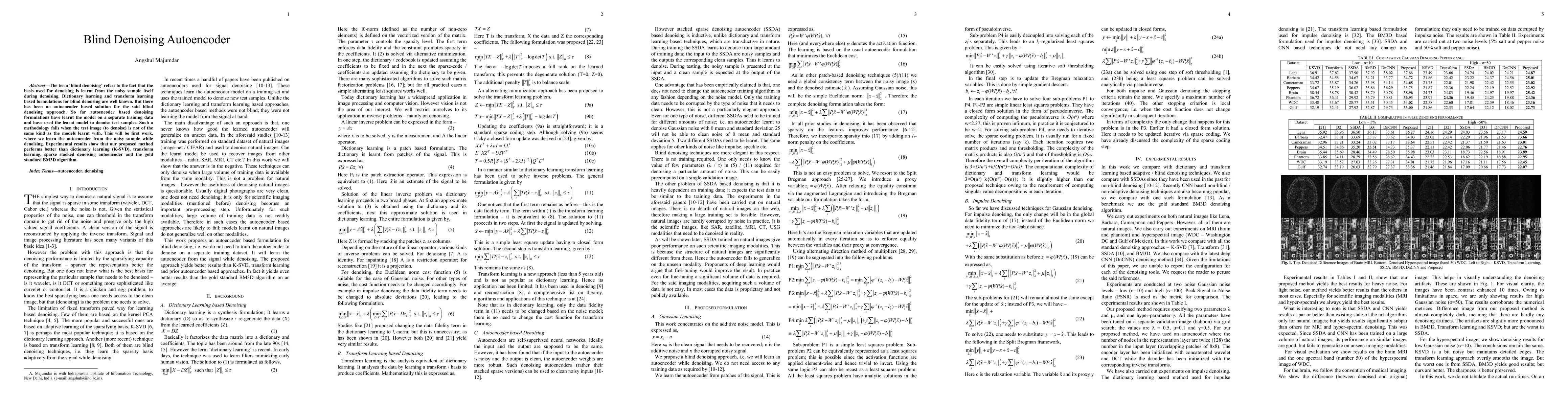 The term blind denoising refers to the fact that the basis used for denoising is learnt from the noisy sample itself during denoising. Dictionary learning and transform learning based formulations for blind denoising are well known. But there has been no autoencoder based solution for the said blind denoising approach. So far autoencoder based denoising formulations have learnt the model on a separate training data and have used the learnt model to denoise test samples. Such a methodology fails when the test image (to denoise) is not of the same kind as the models learnt with. This will be first work, where we learn the autoencoder from the noisy sample while denoising. Experimental results show that our proposed method performs better than dictionary learning (KSVD), transform learning, sparse stacked denoising autoencoder and the gold standard BM3D algorithm.