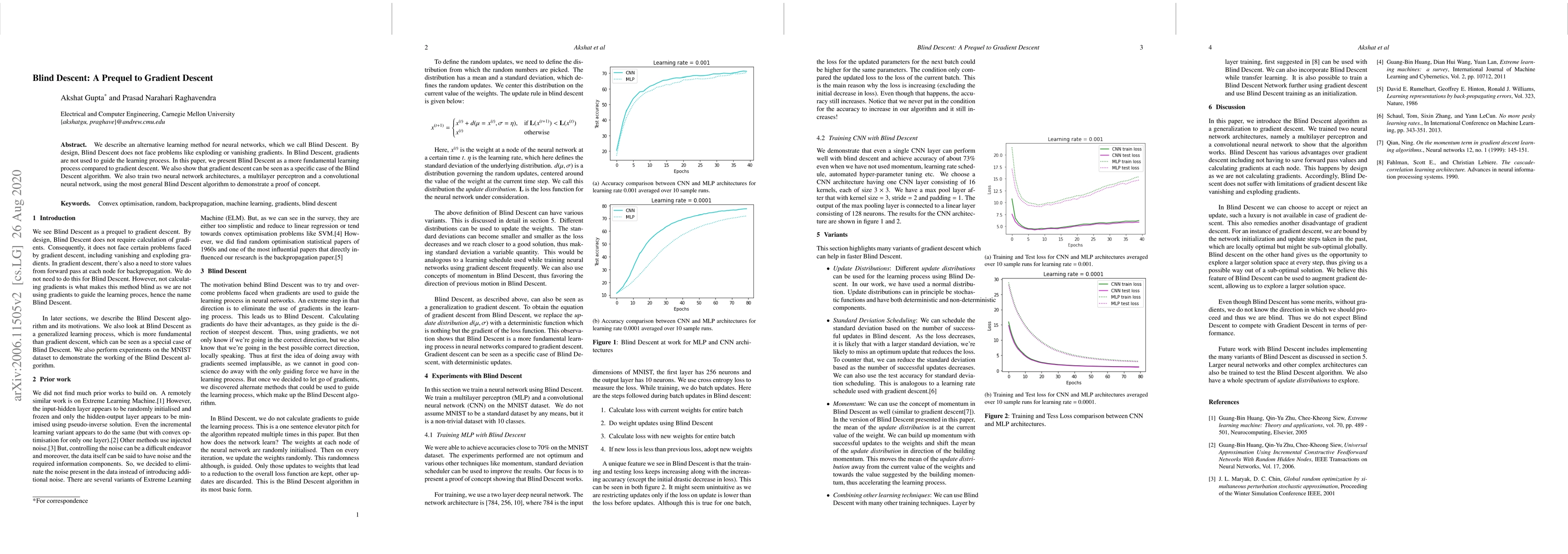 We describe an alternative learning method for neural networks, which we call Blind Descent. By design, Blind Descent does not face problems like exploding or vanishing gradients. In Blind Descent, gradients are not used to guide the learning process. In this paper, we present Blind Descent as a more fundamental learning process compared to gradient descent. We also show that gradient descent can be seen as a specific case of the Blind Descent algorithm. We also train two neural network architectures, a multilayer perceptron and a convolutional neural network, using the most general Blind Descent algorithm to demonstrate a proof of concept.