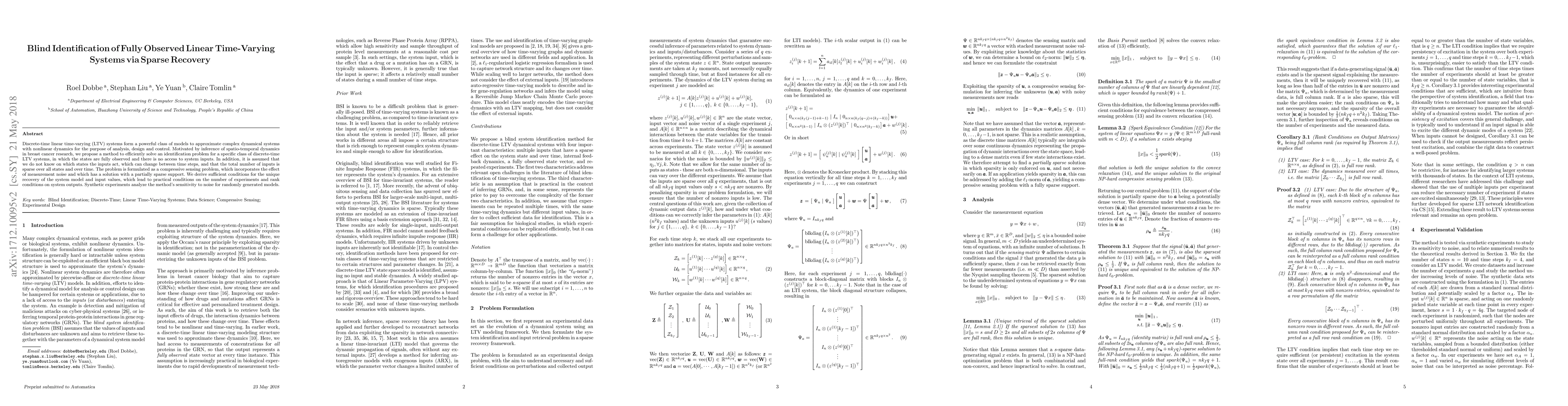 Researchers propose a method to identify discrete-time linear time-varying systems with full state observation, sparse inputs, and measurement noise, enabling efficient analysis and control of complex dynamical systems.