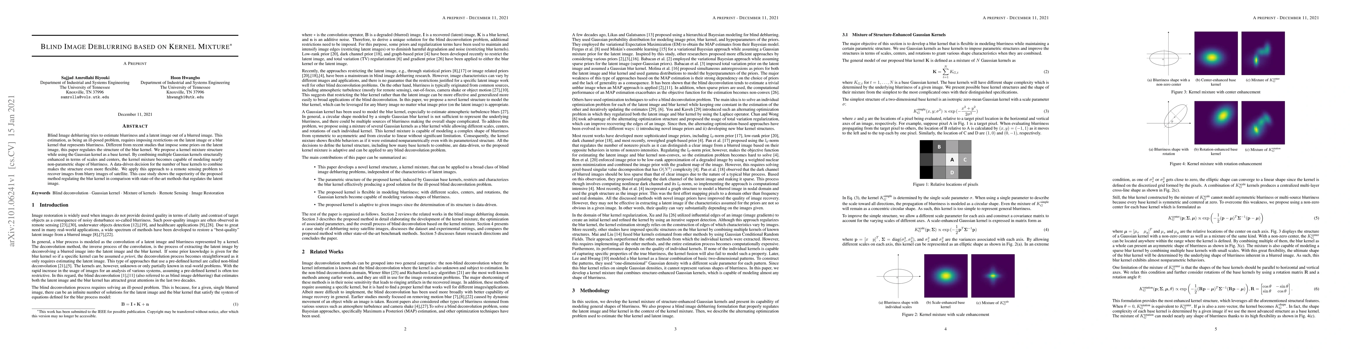 Blind Image deblurring tries to estimate blurriness and a latent image out of a blurred image. This estimation, as being an ill-posed problem, requires imposing restrictions on the latent image or a blur kernel that represents blurriness. Different from recent studies that impose some priors on the latent image, this paper regulates the structure of the blur kernel. We propose a kernel mixture structure while using the Gaussian kernel as a base kernel. By combining multiple Gaussian kernels structurally enhanced in terms of scales and centers, the kernel mixture becomes capable of modeling nearly non-parametric shape of blurriness. A data-driven decision for the number of base kernels to combine makes the structure even more flexible. We apply this approach to a remote sensing problem to recover images from blurry images of satellite. This case study shows the superiority of the proposed method regulating the blur kernel in comparison with state-of-the-art methods that regulates the latent image.