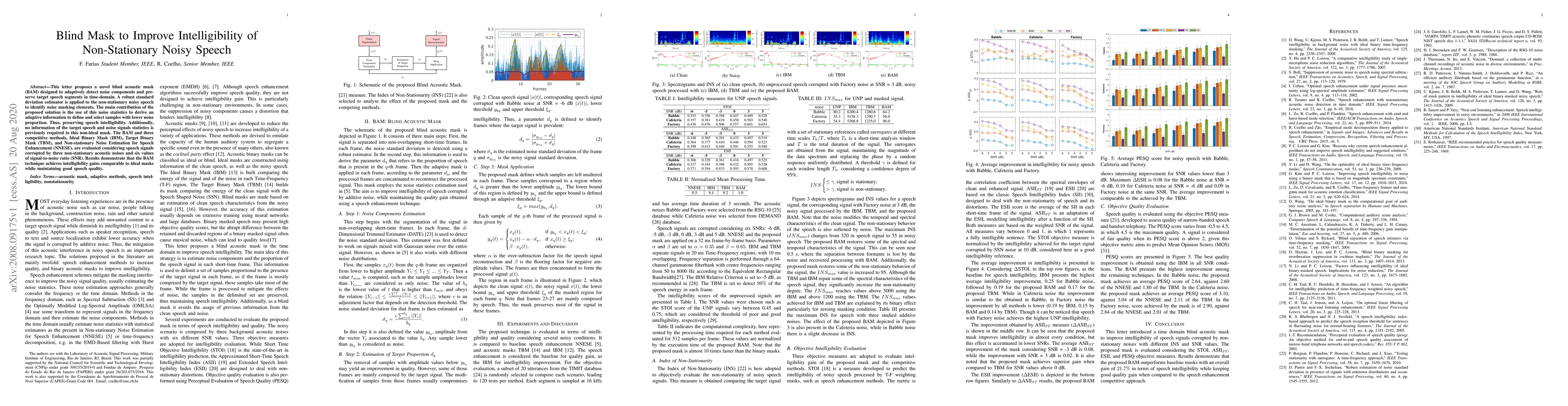 This letter proposes a novel blind acoustic mask (BAM) designed to adaptively detect noise components and preserve target speech segments in time-domain. A robust standard deviation estimator is applied to the non-stationary noisy speech to identify noise masking elements. The main contribution of the proposed solution is the use of this noise statistics to derive an adaptive information to define and select samples with lower noise proportion. Thus, preserving speech intelligibility. Additionally, no information of the target speech and noise signals statistics is previously required to this non-ideal mask. The BAM and three competitive methods, Ideal Binary Mask (IBM), Target Binary Mask (TBM), and Non-stationary Noise Estimation for Speech Enhancement (NNESE), are evaluated considering speech signals corrupted by three non-stationary acoustic noises and six values of signal-to-noise ratio (SNR). Results demonstrate that the BAM technique achieves intelligibility gains comparable to ideal masks while maintaining good speech quality.