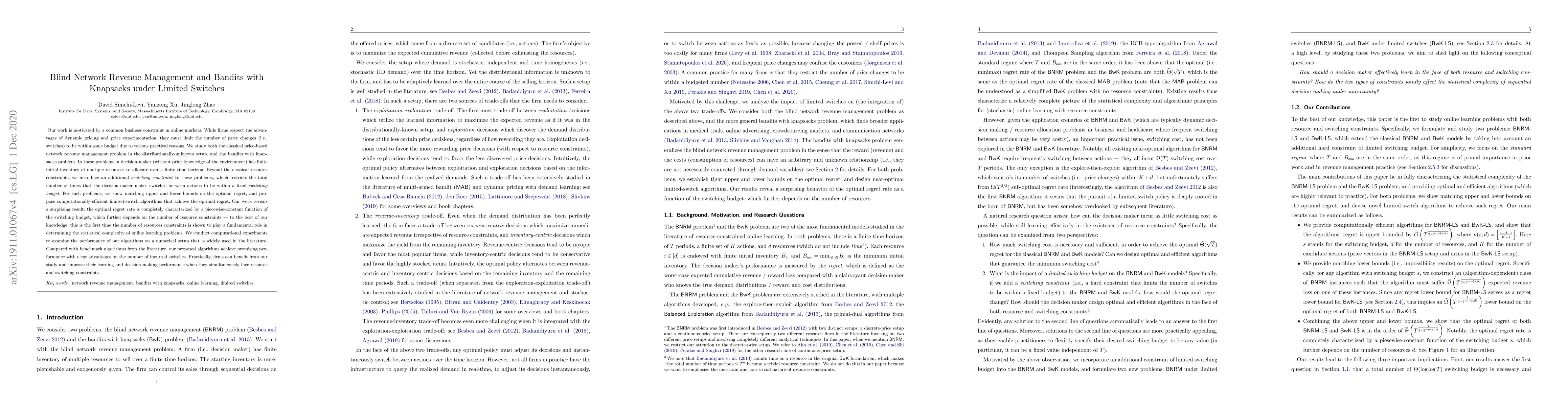 This research introduces a new constraint, limited price switches, to classic revenue management and bandits with knapsacks problems. It presents algorithms achieving optimal regret, with surprising findings that the regret rate depends on the number of resources and switching budget. Computational experiments show promising performance, aiding firms in managing resources and switches simultaneously.