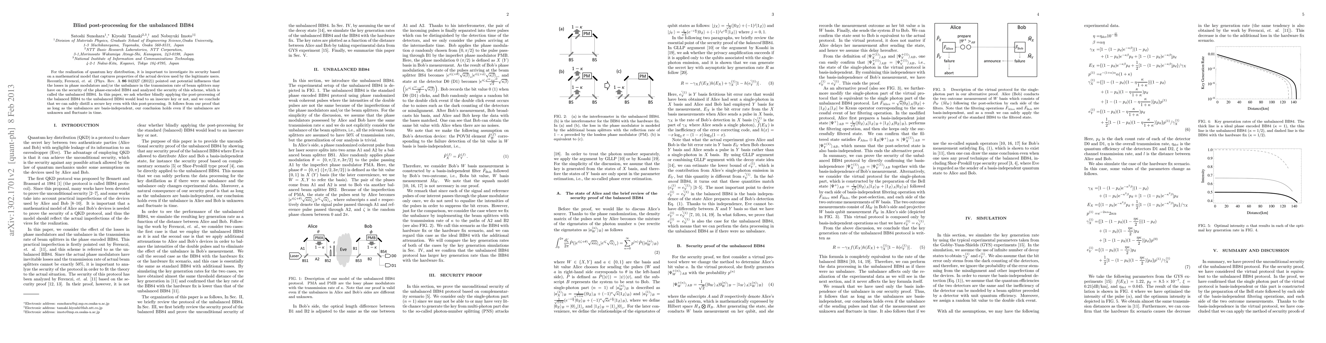 This paper investigates the security of post-processing for the unbalanced BB84 quantum key distribution scheme, demonstrating that blindly applying balanced BB84 post-processing techniques can still yield a secure key, provided the unbalances are basis-independent and unknown fluctuations are accounted for.