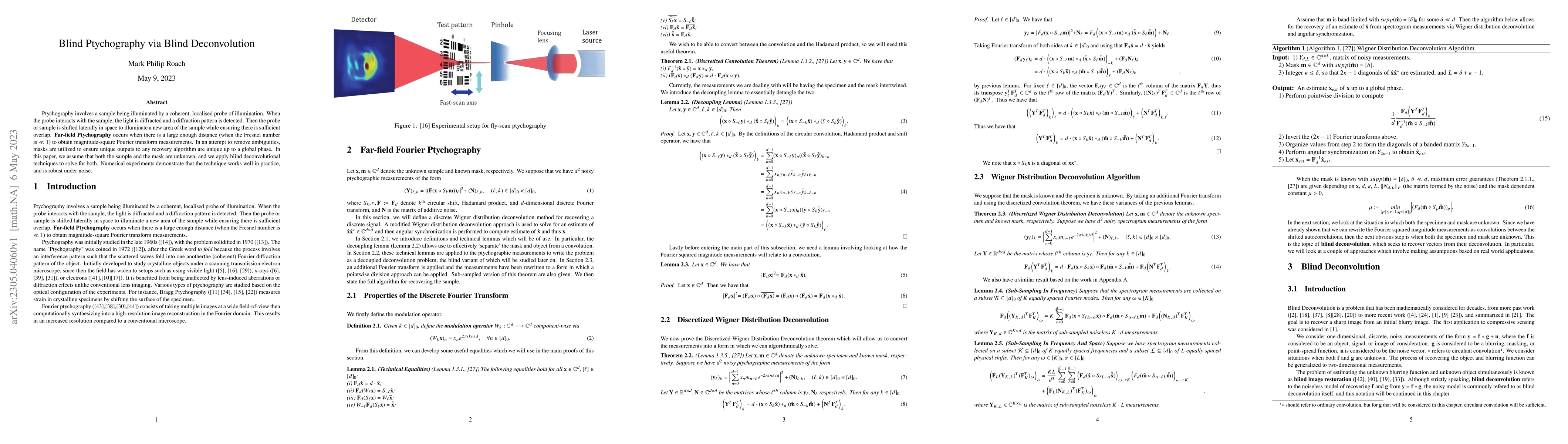 Ptychography involves a sample being illuminated by a coherent, localised probe of illumination. When the probe interacts with the sample, the light is diffracted and a diffraction pattern is detected. Then the probe or sample is shifted laterally in space to illuminate a new area of the sample while ensuring there is sufficient overlap. Far-field Ptychography occurs when there is a large enough distance (when the Fresnel number is much greater than 1) to obtain magnitude-square Fourier transform measurements. In an attempt to remove ambiguities, masks are utilized to ensure unique outputs to any recovery algorithm are unique up to a global phase. In this paper, we assume that both the sample and the mask are unknown, and we apply blind deconvolutional techniques to solve for both. Numerical experiments demonstrate that the technique works well in practice, and is robust under noise.