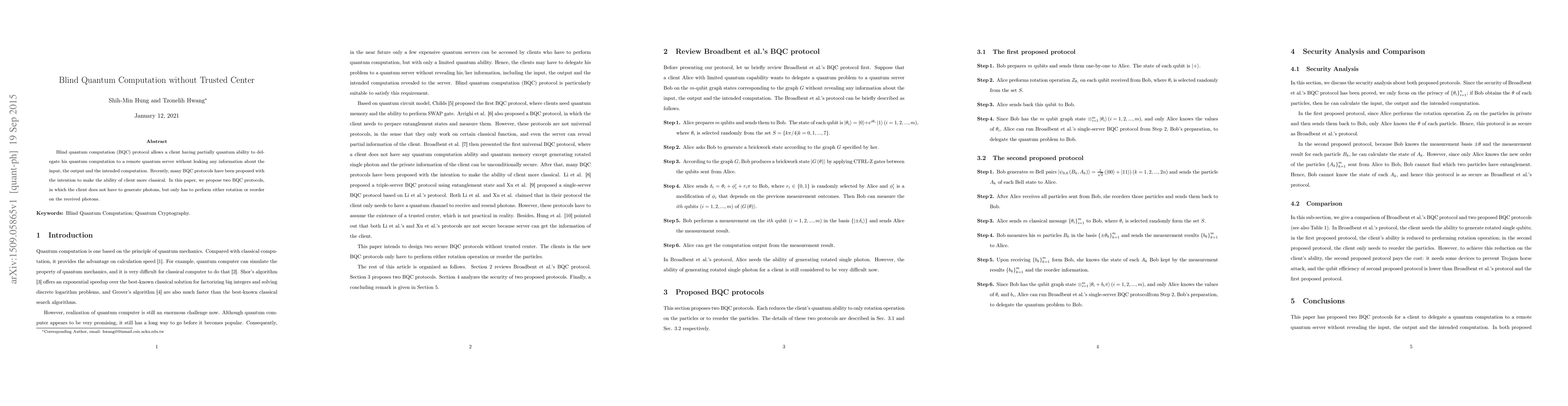 This paper proposes two blind quantum computation protocols where the client only needs to perform simple rotations or reordering on received photons, eliminating the need for photon generation and thus enhancing the client's classical capabilities while ensuring no information leakage to the remote quantum server.