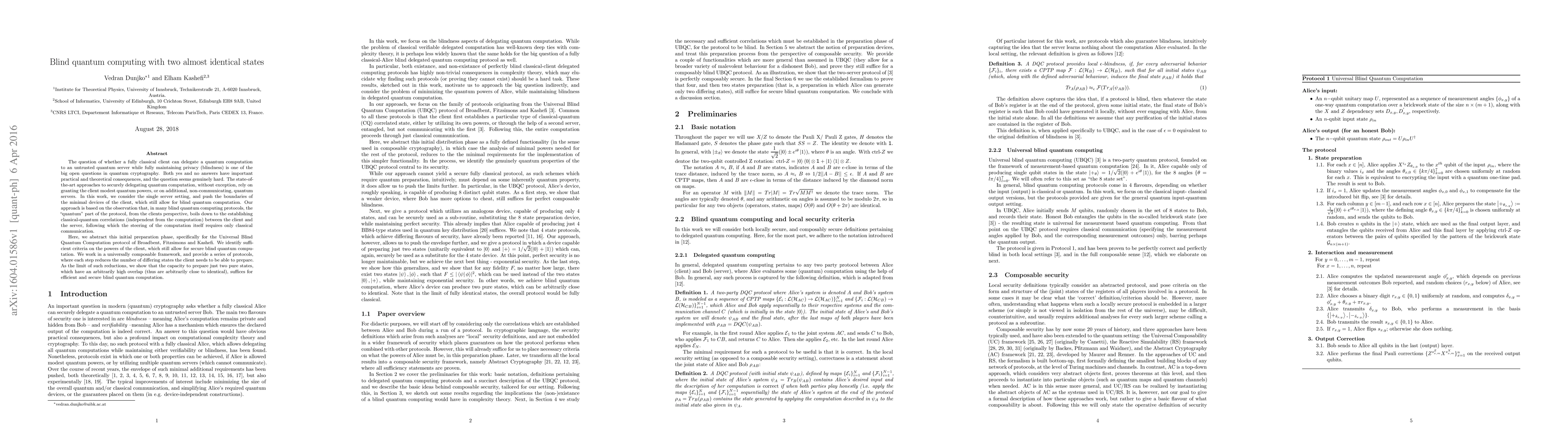 This paper explores the feasibility of blind quantum computing with minimal client capabilities, demonstrating that secure quantum computations can be delegated to an untrusted server while maintaining privacy, provided the client can prepare just two almost identical quantum states. The work identifies sufficient criteria and provides protocols that reduce the client's quantum requirements, ultimately showing that high state overlap suffices for efficient and secure blind quantum computation.