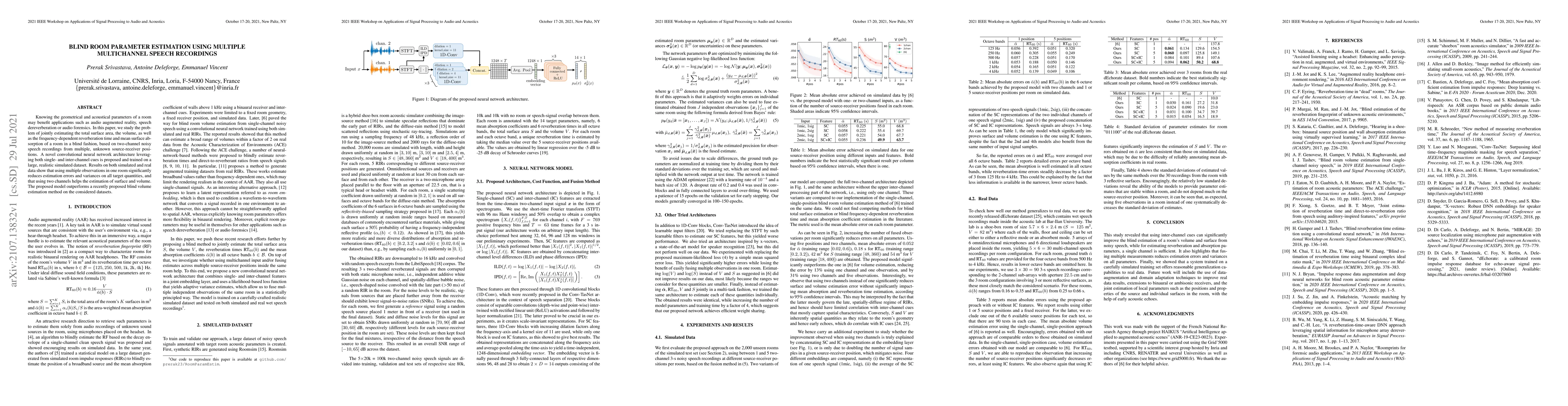 This paper proposes a convolutional neural network to estimate room's geometrical and acoustical parameters from multiple noisy speech recordings. The model leverages both single- and inter-channel cues, significantly reducing estimation errors when using observations from different source-receiver positions.