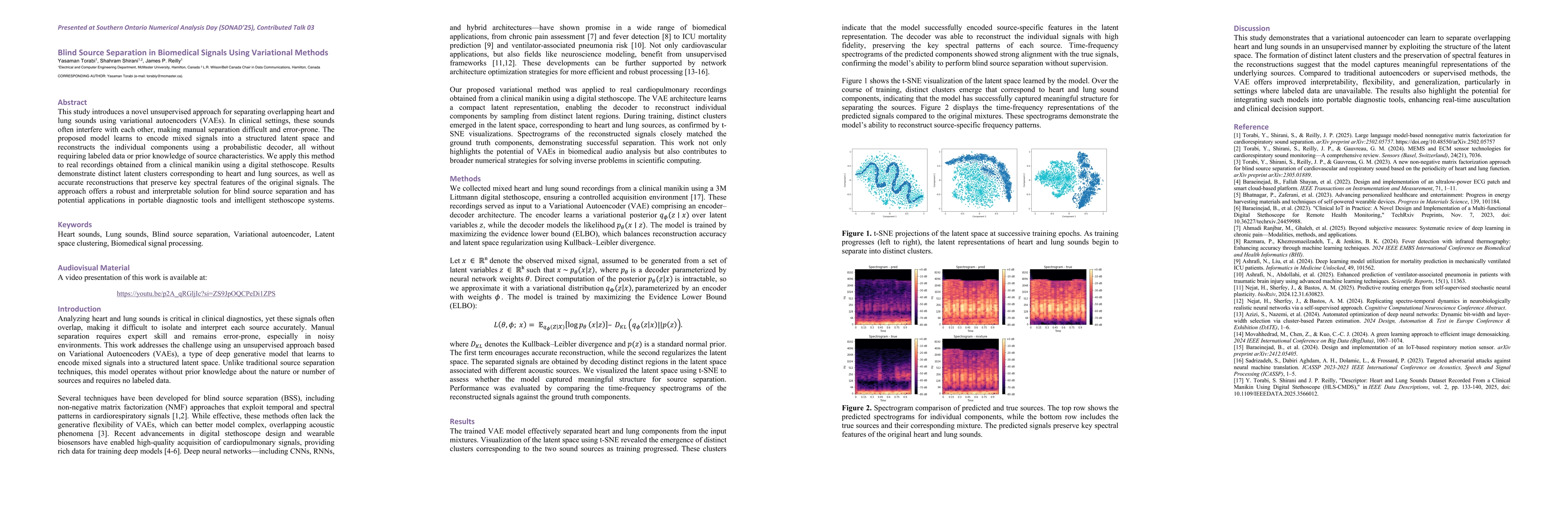 This research presents a new method using Variational Autoencoders (VAEs) to separate overlapping heart and lung sounds in biomedical signals without labeled data. The model successfully creates distinct clusters for heart and lung sounds in real clinical recordings, paving the way for advanced portable diagnostic tools and smarter stethoscopes.