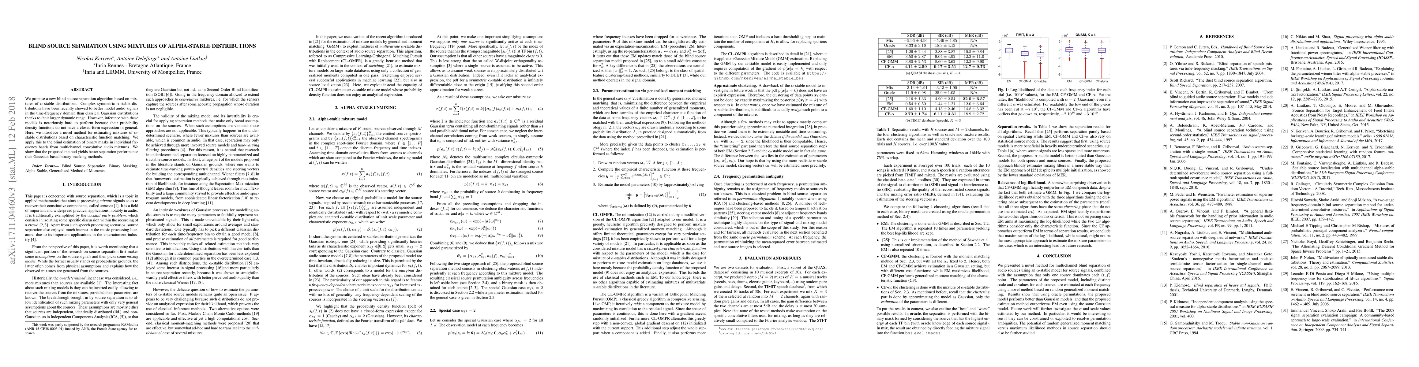 The paper introduces a novel method for estimating mixtures of alpha-stable distributions using characteristic function matching, specifically tailored for blind source separation in the audio domain.