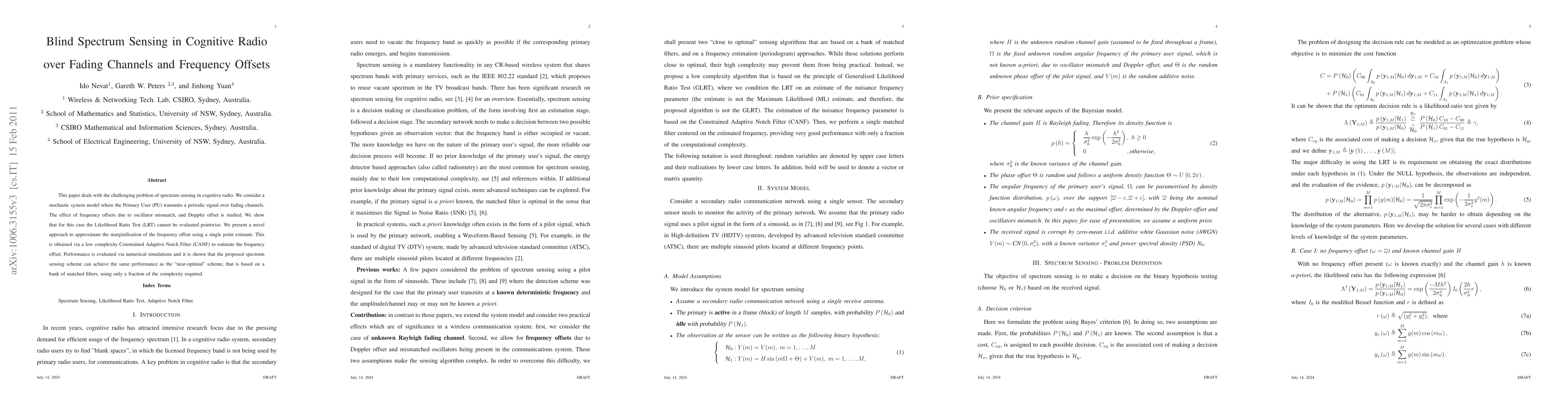 Researchers developed a low-complexity spectrum sensing method that achieves near-optimal performance for blind spectrum sensing in cognitive radio networks over fading channels and frequency offsets.
