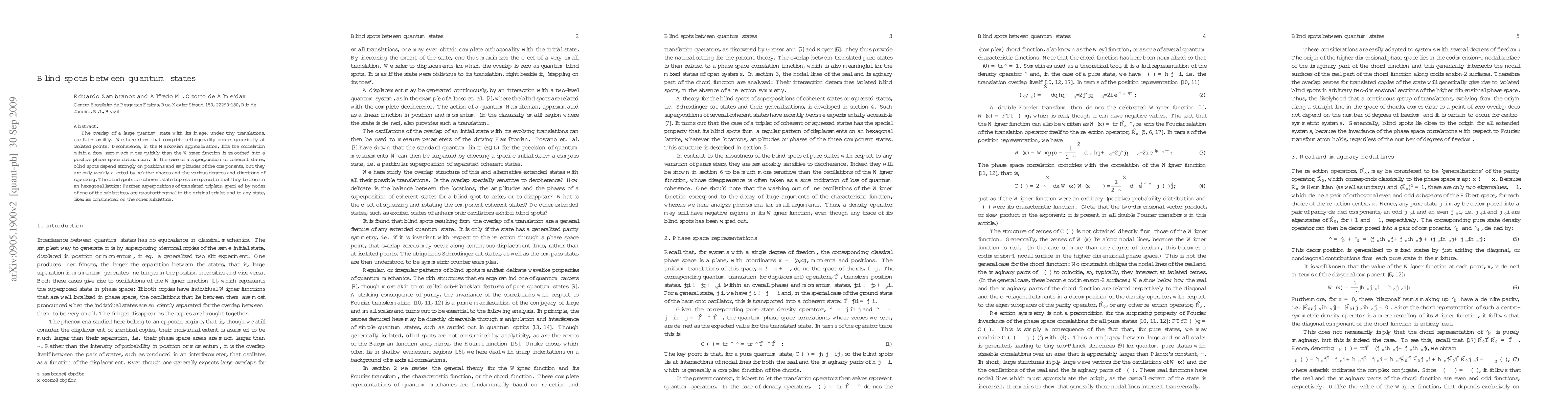 Research shows that quantum states have blind spots where their overlap with small translations is zero, affecting decoherence rates and phase space distributions. These blind spots can form hexagonal lattices in superpositions of coherent states.
