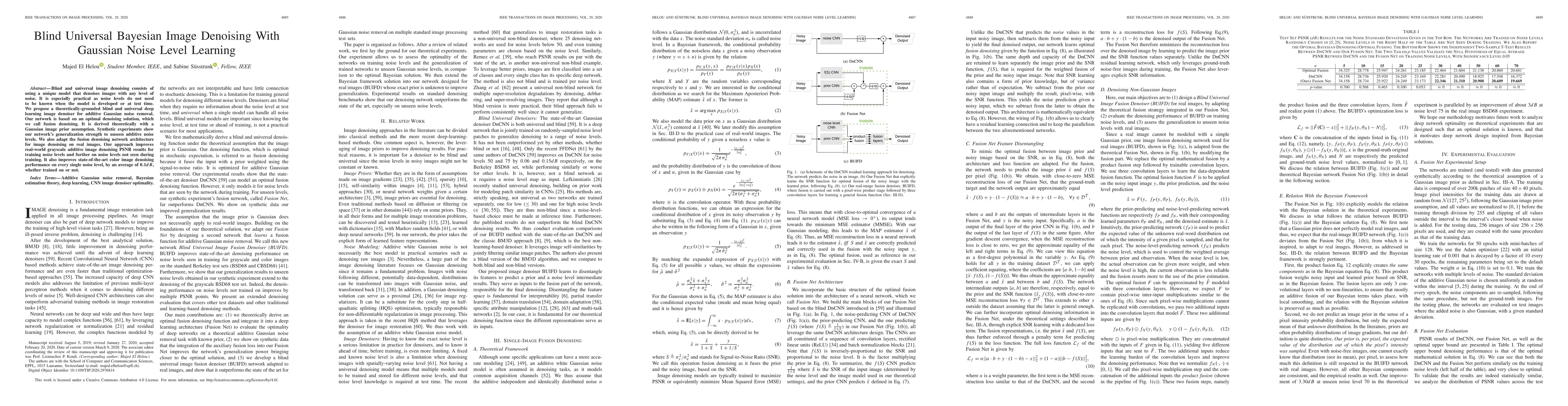 This paper proposes a theoretically-grounded deep learning model for blind and universal image denoising, which effectively removes additive Gaussian noise without requiring prior knowledge of noise levels. The model, based on fusion denoising, outperforms state-of-the-art methods in both synthetic and real-world grayscale and color image denoising tasks.