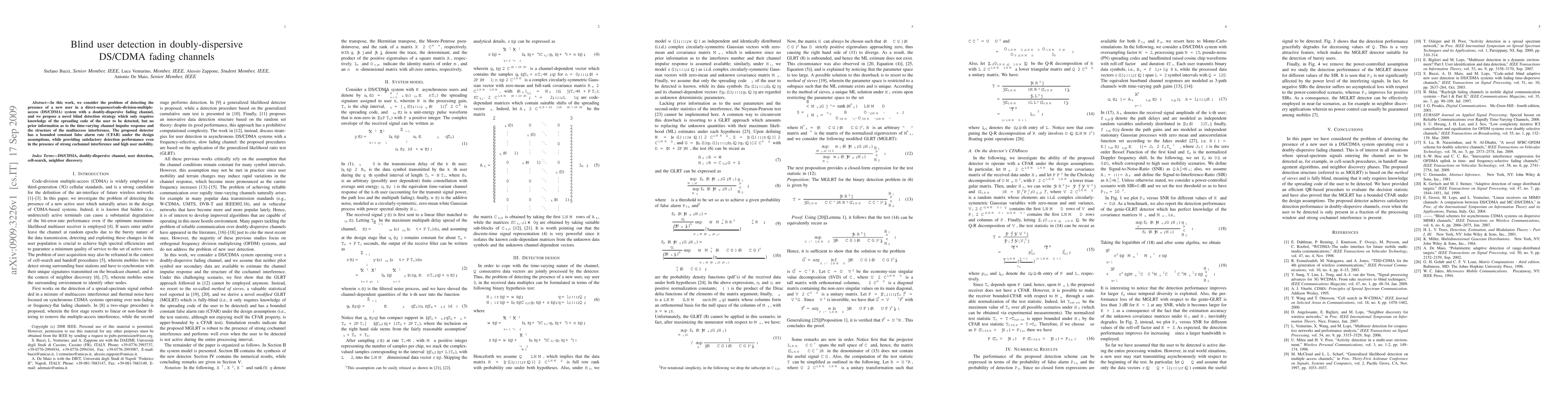A new blind detection strategy is proposed for detecting new users in DS/CDMA systems with doubly-dispersive fading channels, requiring only the user's spreading code knowledge.