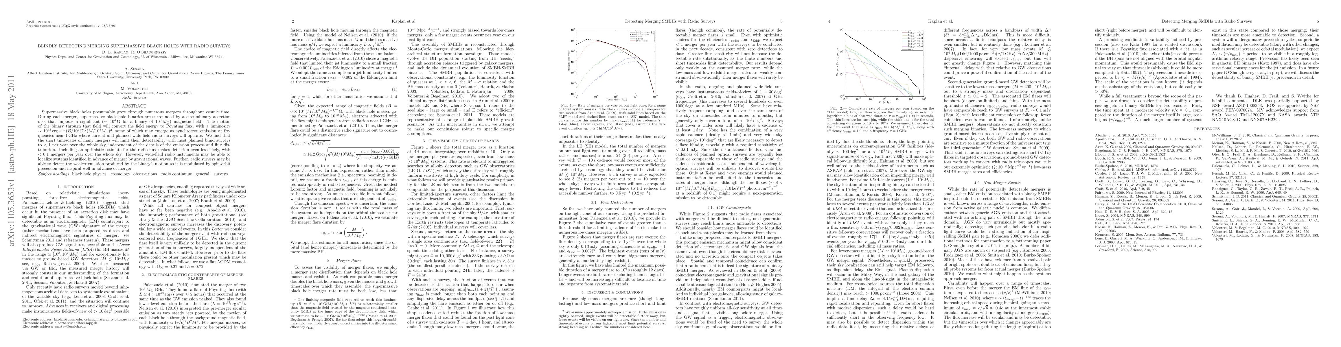 This paper explores the detectability of merging supermassive black holes via radio surveys, finding that most mergers are unlikely to be detected due to their short timescales and faint radio emissions. However, gravitational wave precursors and spin-orbit precession effects may allow for some detections, especially with advanced wide-field radio instruments.