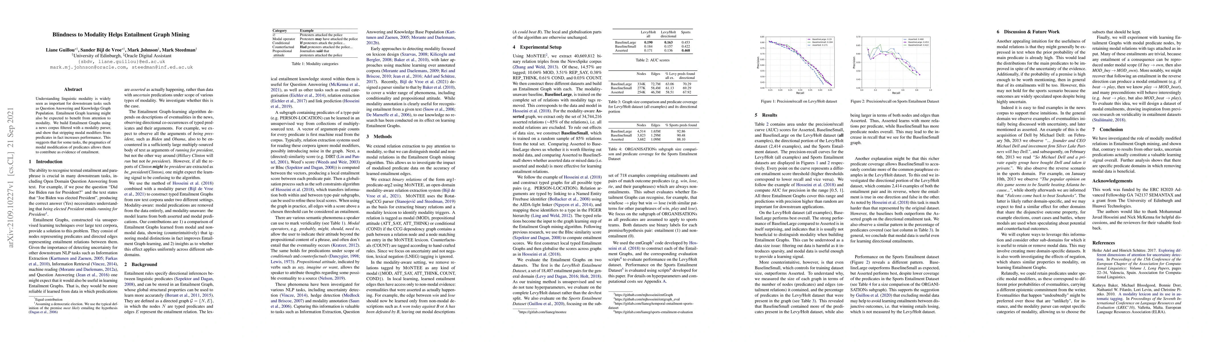 Understanding linguistic modality is widely seen as important for downstream tasks such as Question Answering and Knowledge Graph Population. Entailment Graph learning might also be expected to benefit from attention to modality. We build Entailment Graphs using a news corpus filtered with a modality parser, and show that stripping modal modifiers from predicates in fact increases performance. This suggests that for some tasks, the pragmatics of modal modification of predicates allows them to contribute as evidence of entailment.