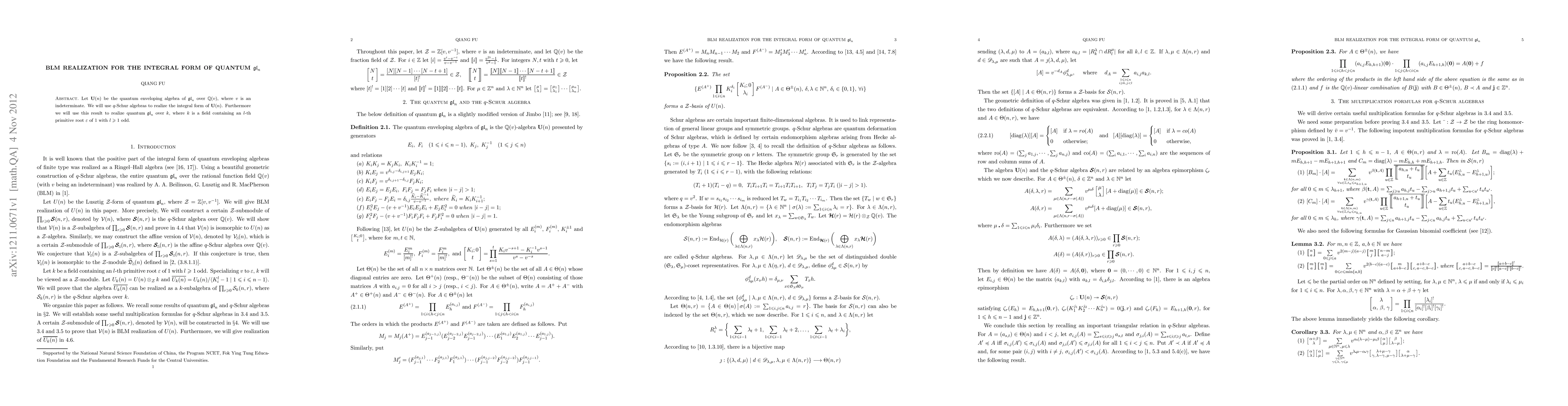 This paper realizes the integral form of the quantum enveloping algebra ${\mathbf U}(n)$ using $q$-Schur algebras and extends this realization to quantum $\frak{gl}_n$ over fields containing an odd root of unity.