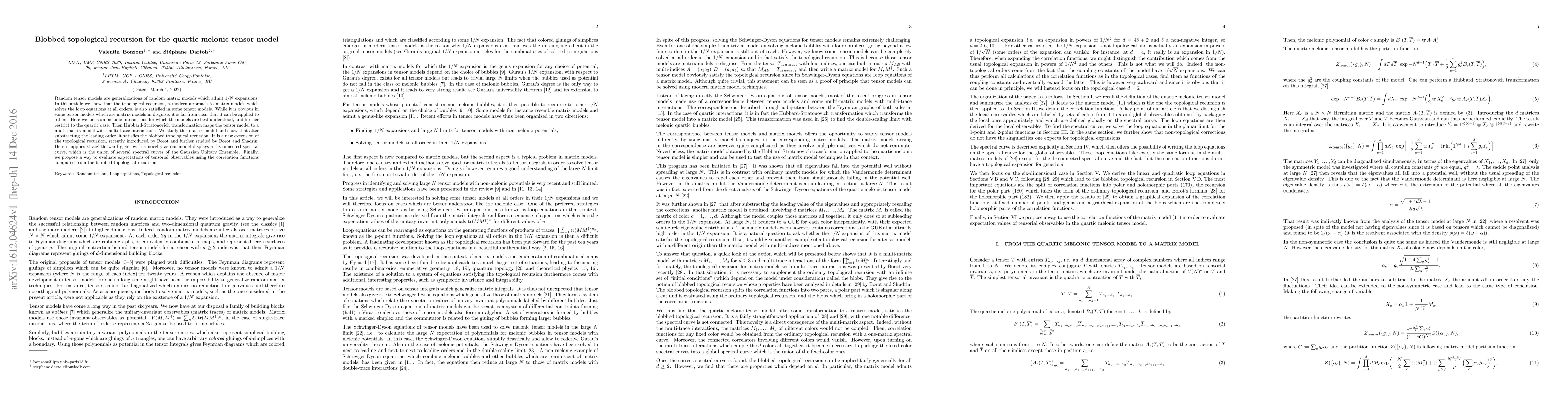 This paper demonstrates that the topological recursion applies to quartic melonic tensor models, extending it to models with disconnected spectral curves. It proposes a method to evaluate tensorial observables using correlation functions derived from the newly introduced blobbed topological recursion.