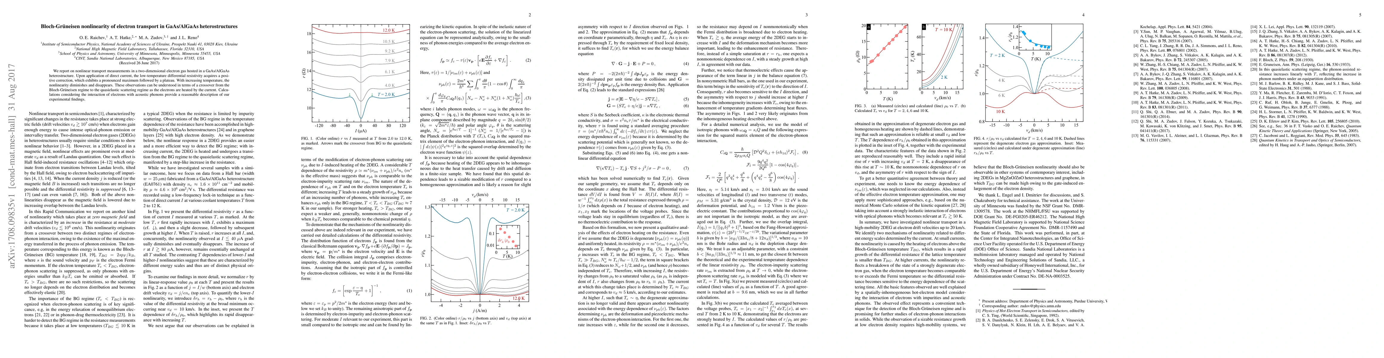 This study investigates nonlinear transport in GaAs/AlGaAs heterostructures, revealing a positive correction in low-temperature differential resistivity under direct current, peaking then plateauing. The nonlinearity diminishes with temperature, suggesting a transition from Bloch-Gr\"uneisen to quasielastic scattering regimes, supported by electron-acoustic phonon interaction calculations.