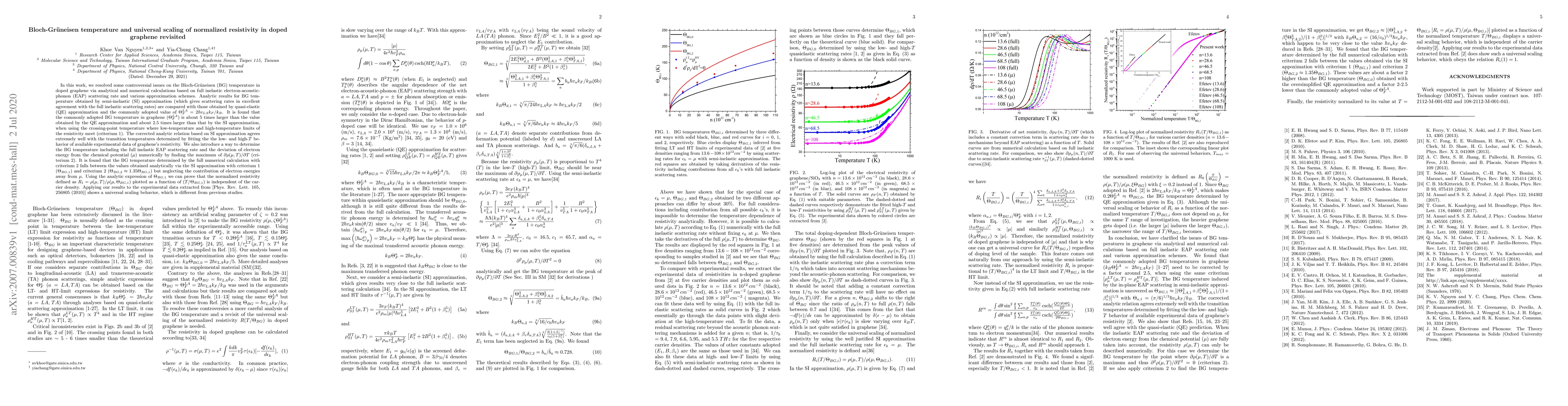 In this work, we resolved some controversial issues on the Bloch-Gr\"{u}neisen (BG) temperature in doped graphene via analytical and numerical calculations based on full inelastic electron-acoustic-phonon (EAP) scattering rate and various approximation schemes. Analytic results for BG temperature obtained by semi-inelastic (SI) approximation (which gives scattering rates in excellent agreement with the full inelastic scattering rates) are compared with those obtained by quasi-elastic (QE) approximation and the commonly adopted value of $\Theta^{LA}_{F} = 2\hbar v_{LA} k_F/k_B$. It is found that the commonly adopted BG temperature in graphene ($\Theta^{LA}_{F}$) is about 5 times larger than the value obtained by the QE approximation and about 2.5 times larger than that by the SI approximation, when using the crossing-point temperature where low-temperature and high-temperature limits of the resistivity meet. The corrected analytic relation based on SI approximation agrees extremely well with the transition temperatures determined by fitting the the low- and high-$T$ behavior of available experimental data of graphene's resistivity. We also introduce a way to determine the BG temperature including the full inelastic EAP scattering rate and the deviation of electron energy from the chemical potential ($\mu$) numerically by finding the maximum of $\partial \rho(\mu,T)/\partial T$. Using the analytic expression of $\Theta_{BG,1}$ we can prove that the normalized resistivity defined as $R_{1}=\rho(\mu,T)/\rho(\mu,\Theta_{BG,1})$ plotted as a function of $(T/\Theta_{BG,1})$ is independent of the carrier density. Applying our results to previous experimental data extracted shows a universal scaling behavior, which is different from previous studies.