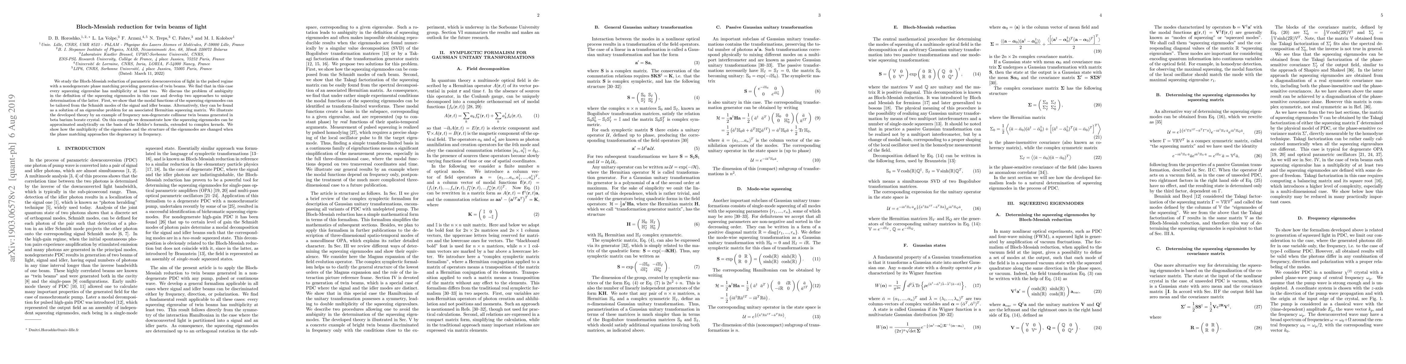 Researchers investigate the Bloch-Messiah reduction for twin beams of light in parametric downconversion, finding that squeezing eigenvalues have multiplicity at least two, and proposing methods to uniquely determine the eigenmodes.