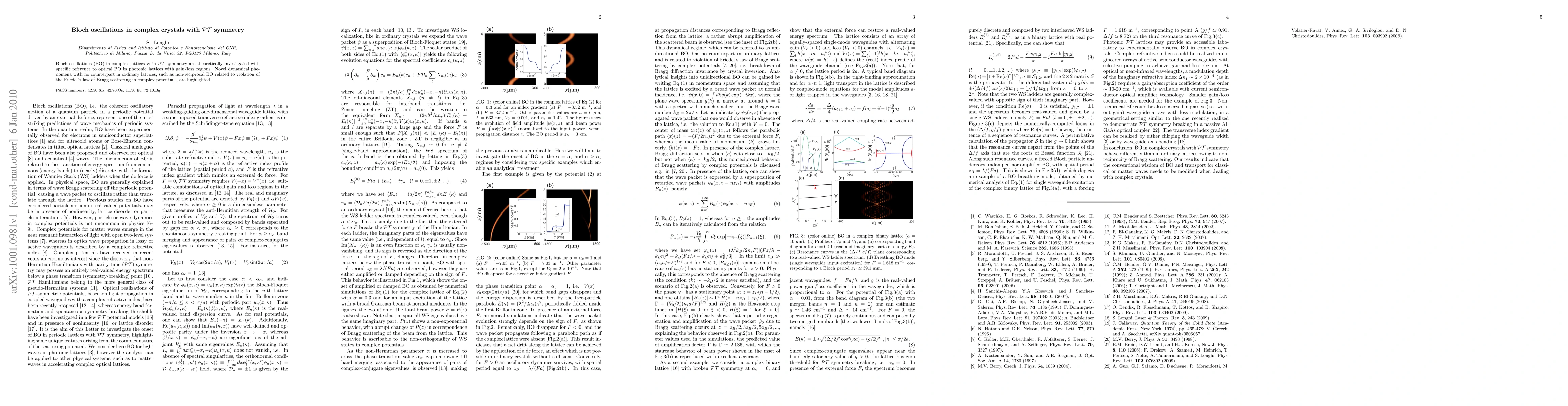 This paper investigates Bloch oscillations in PT-symmetric complex crystals, focusing on optical Bloch oscillations in photonic lattices with gain/loss regions, revealing novel non-reciprocal phenomena not seen in ordinary lattices, including violations of Friedel's law of Bragg scattering.