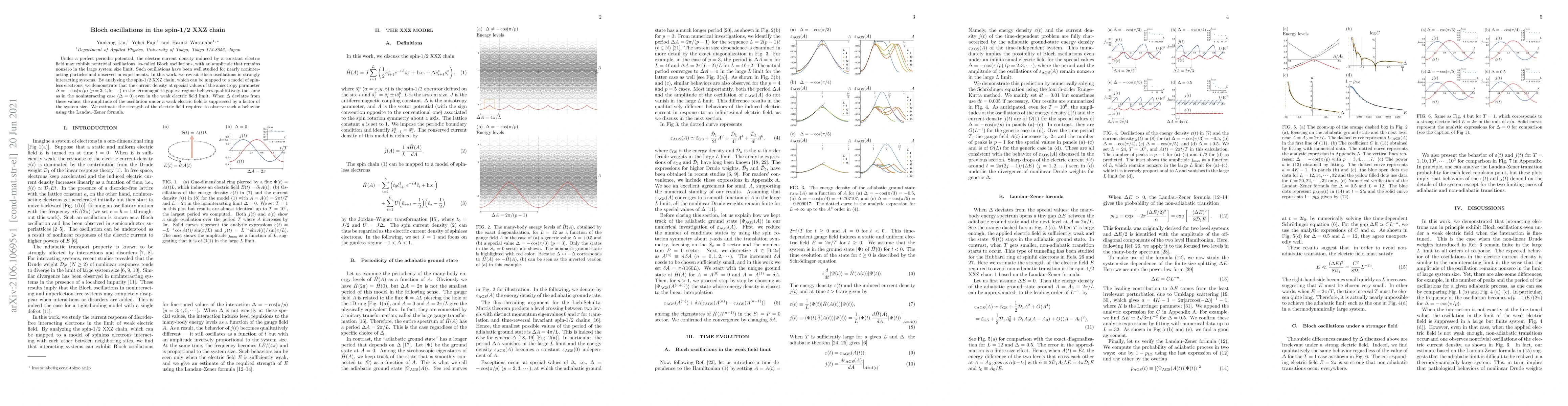 Researchers investigated Bloch oscillations in a spin-1/2 XXZ chain under a constant electric field, finding that at specific anisotropy parameter values, the current density behaves similarly to noninteracting particles, even in weak electric fields.