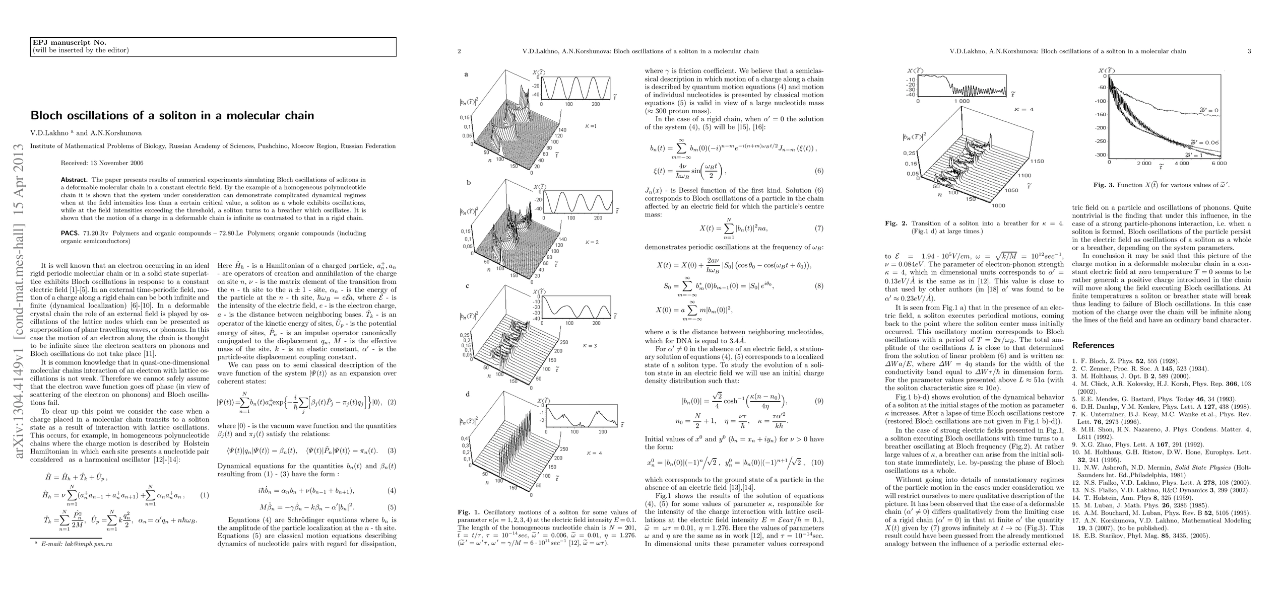 A soliton in a deformable molecular chain demonstrates Bloch oscillations at low electric field intensities, turning into a breather that oscillates at higher intensities. The motion of a charge is infinite in the deformable chain compared to a rigid chain.